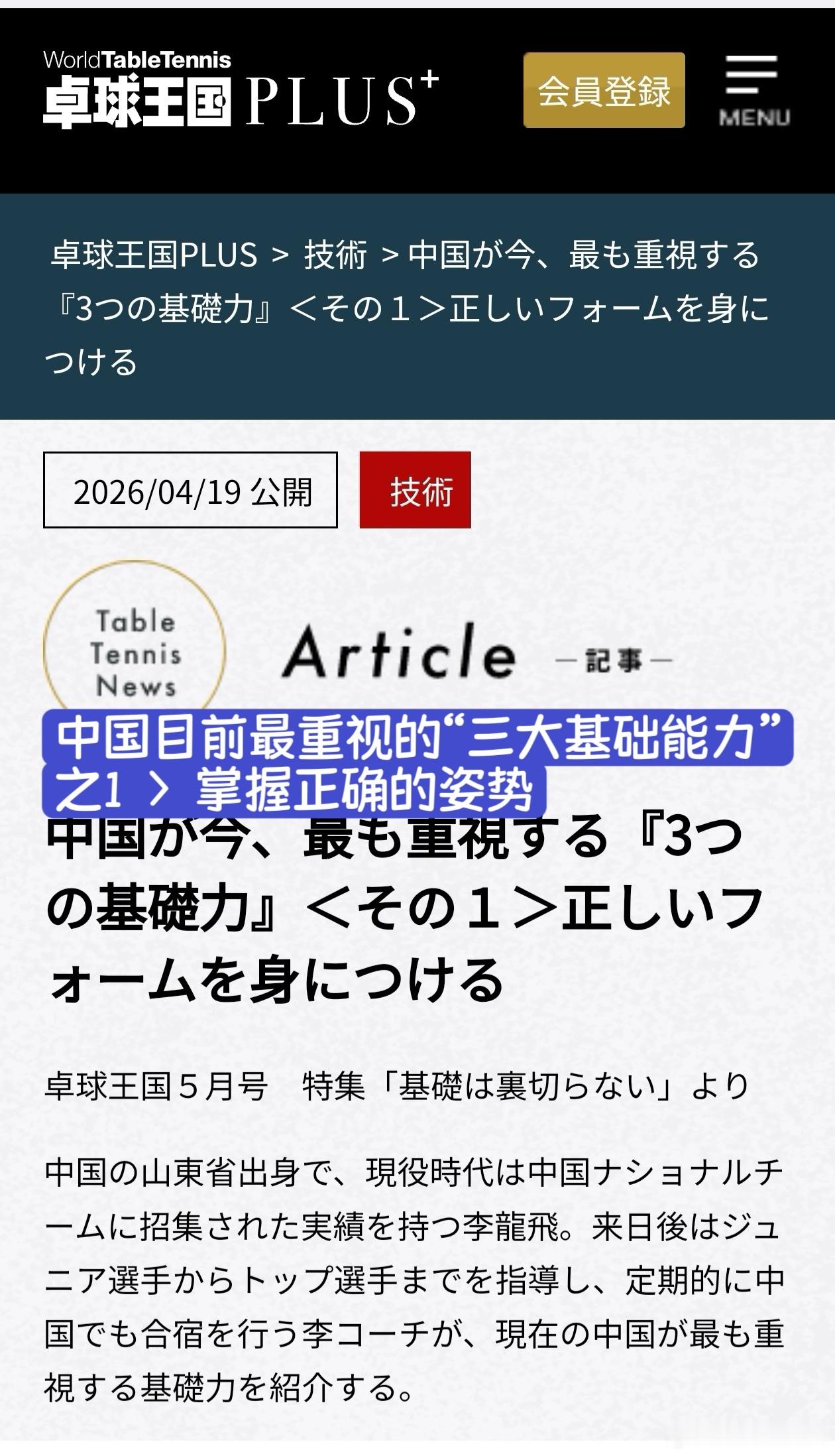 《桌球王国》今天刊登了一篇文章,内容为华裔乒乓球教练李龙飞谈中国队最重视的三大基础能力。文中提到莎莎。分享给大家。(因只向会员开放,故只能看到一小段)孙颖莎超级巨星孙颖莎megastar孙颖莎孙颖莎登德塔文商业榜第三孙颖莎争分夺秒备战世乒赛
