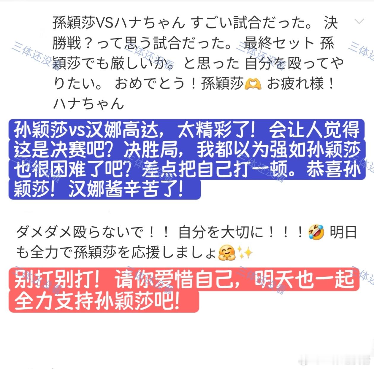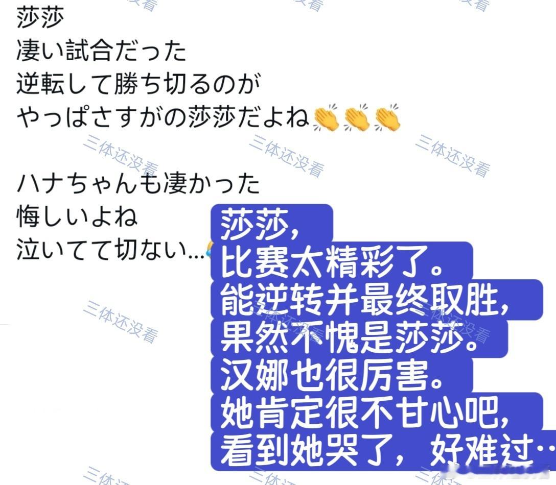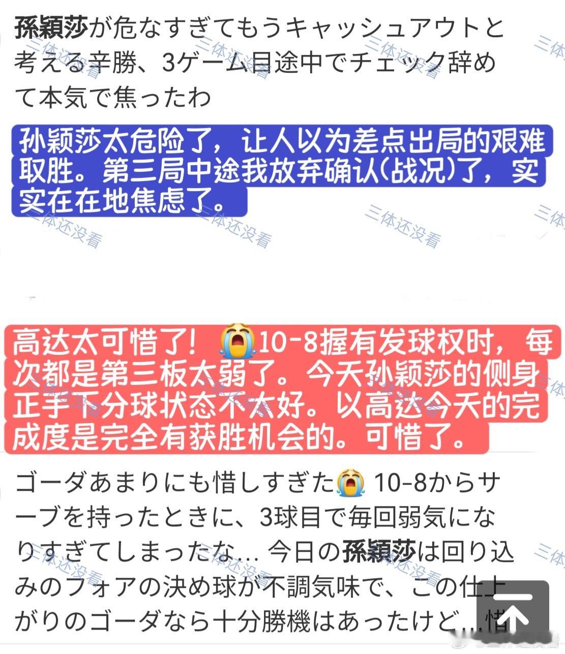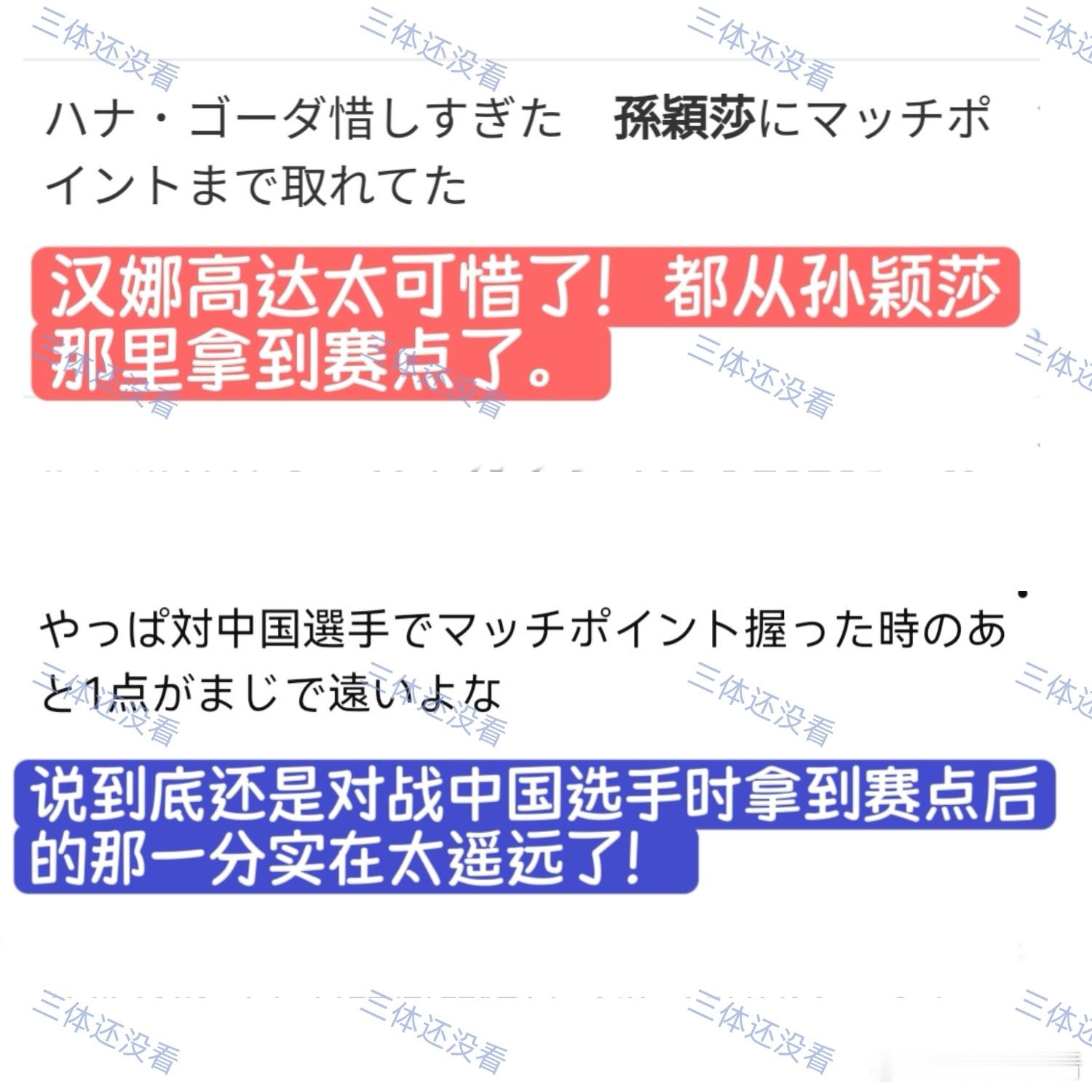 2026年澳门世界杯,1/4决赛孙颖莎vs汉娜·高达的评论分享给大家。“孙酱,我