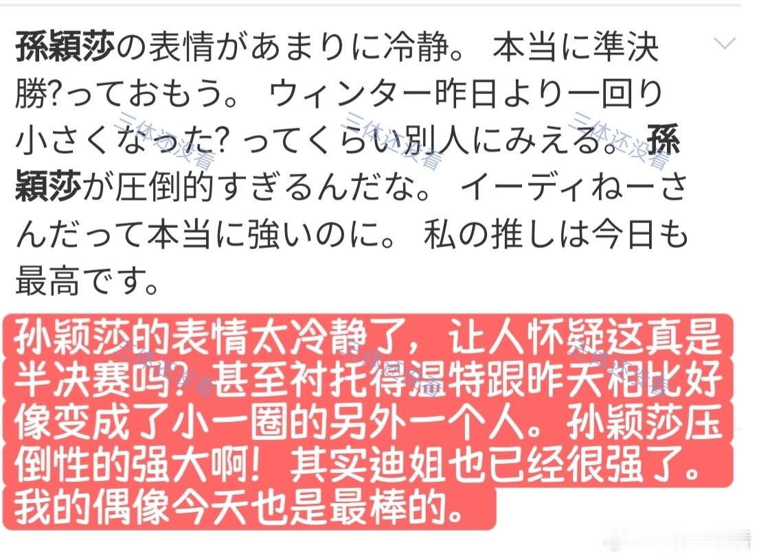 捡捡散落在四处的评论。孙颖莎孙颖莎冠军孙颖莎创造历史超级巨星孙颖莎孙颖莎全方位领跑