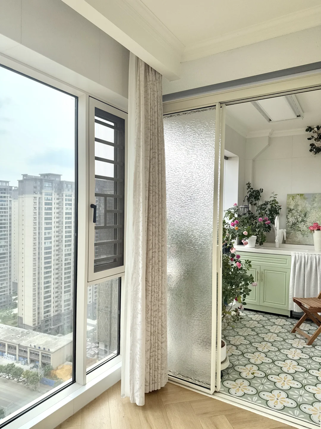 阳台封一半留一半,有空中花园还兼顾洗衣晾晒区