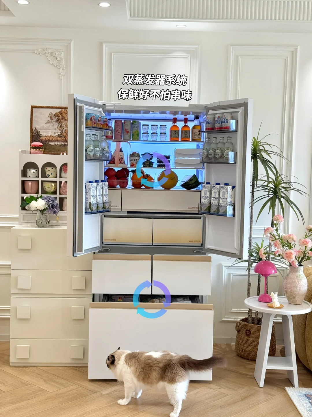 还有之前很多粉丝问我,担心冰箱放客厅有噪音,这台有AI降噪功能,就算在沙发躺平也听不到什么噪音。家居C位,冰箱顶配,选对智能家电真的给生活提升不少幸福感啊!