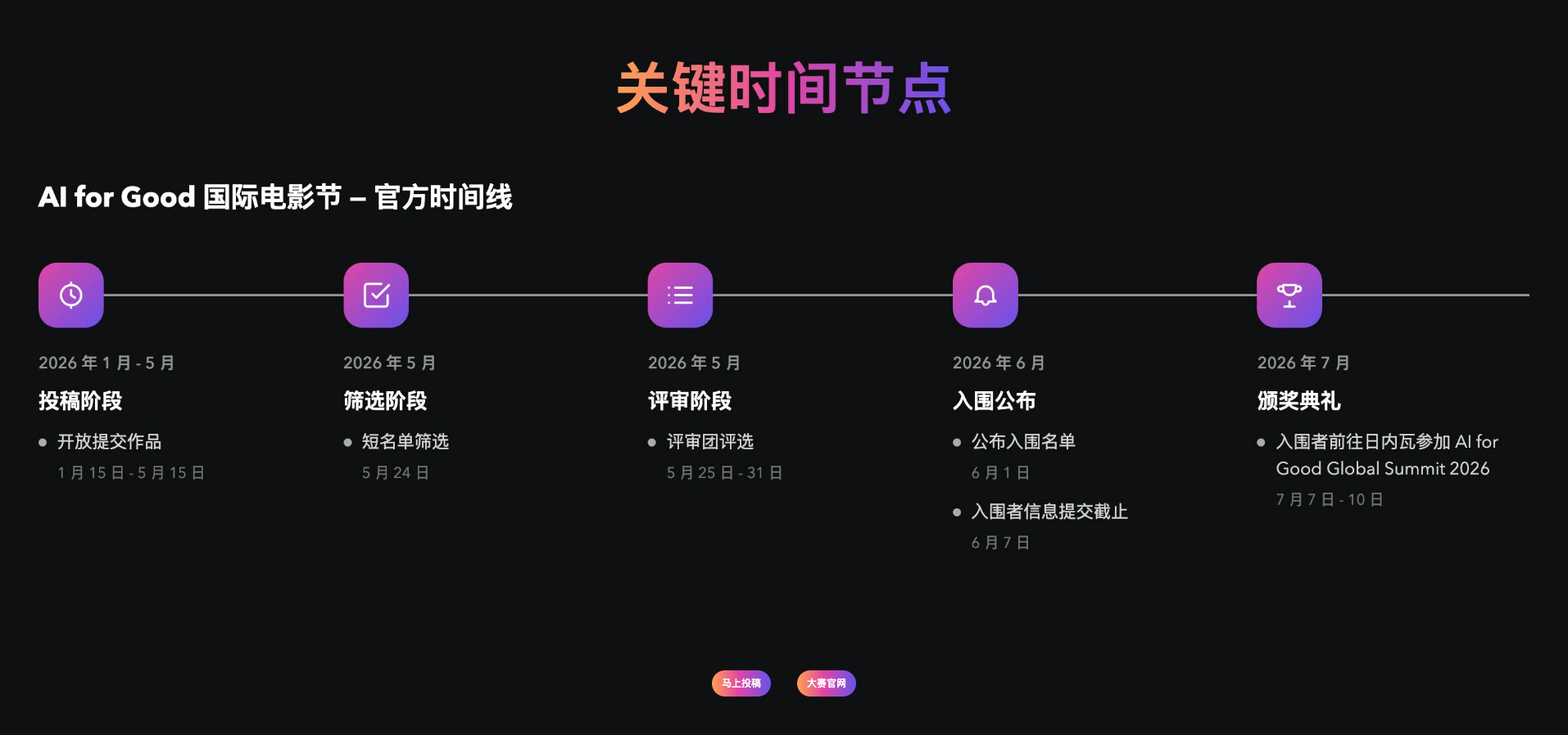 配套的AI for Good电影节,今年面向全球公开征集AI视频作品,获奖作品会在峰会现场展映。