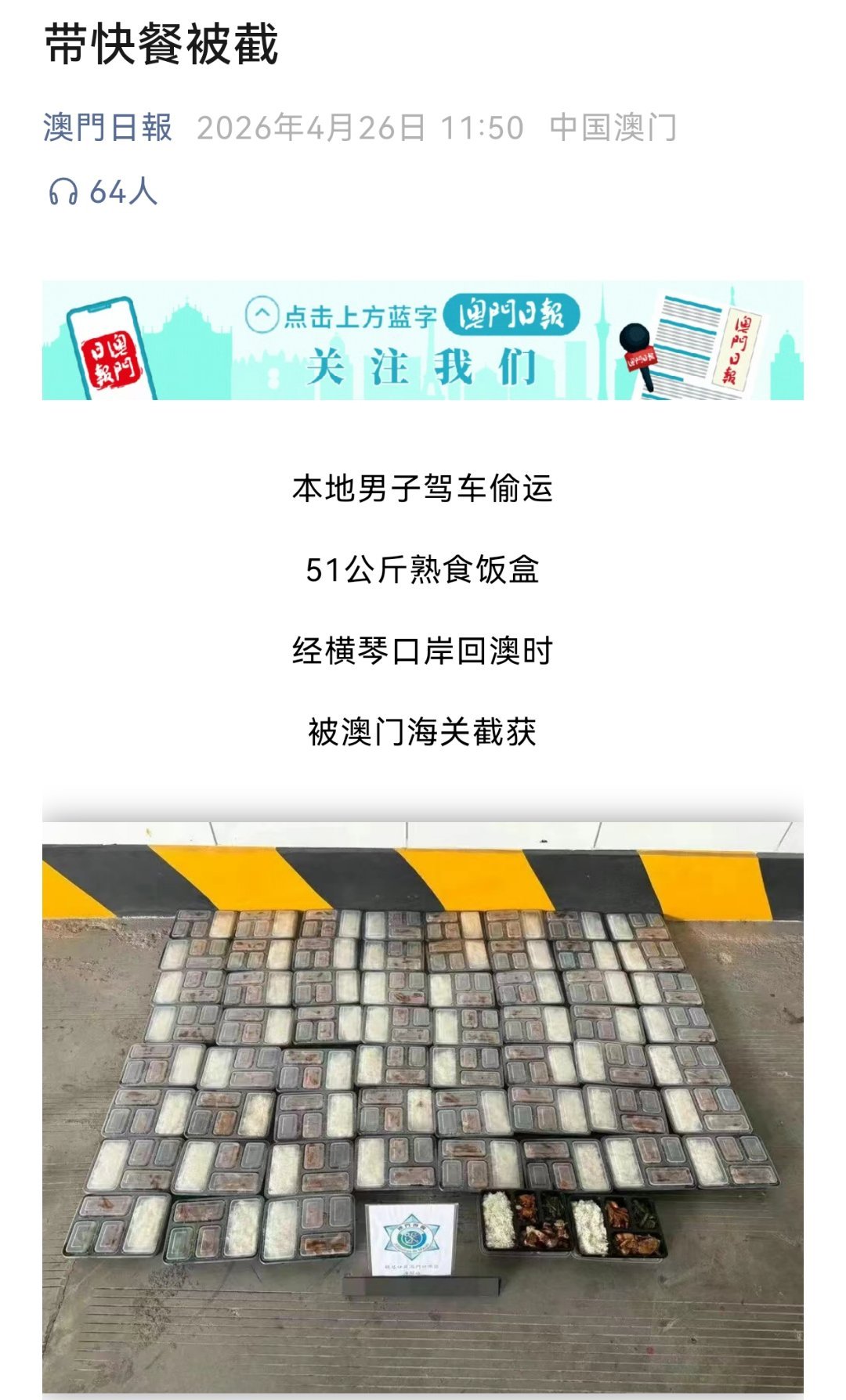 男子偷运大量盒饭入澳海关查获引思考~~近日一则新闻吸引了我的注意。一男
