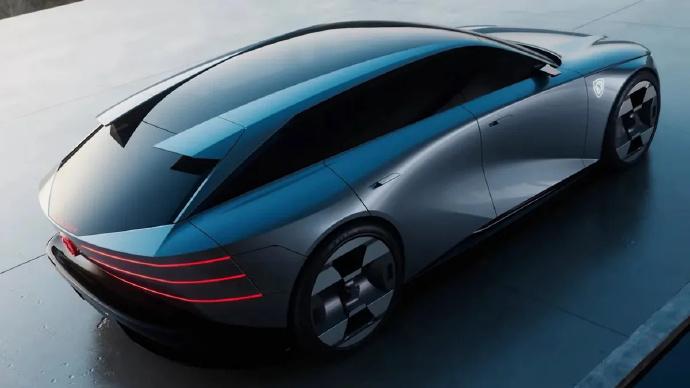 创新的设计里有一些回归本源的初衷,发光重叠的车标+翼子板车标、无边界的封闭前脸、前后三狮爪式头尾灯、高窗线、夸张的后下扩散器、两段式的獠牙后尾翼,设计很法系。