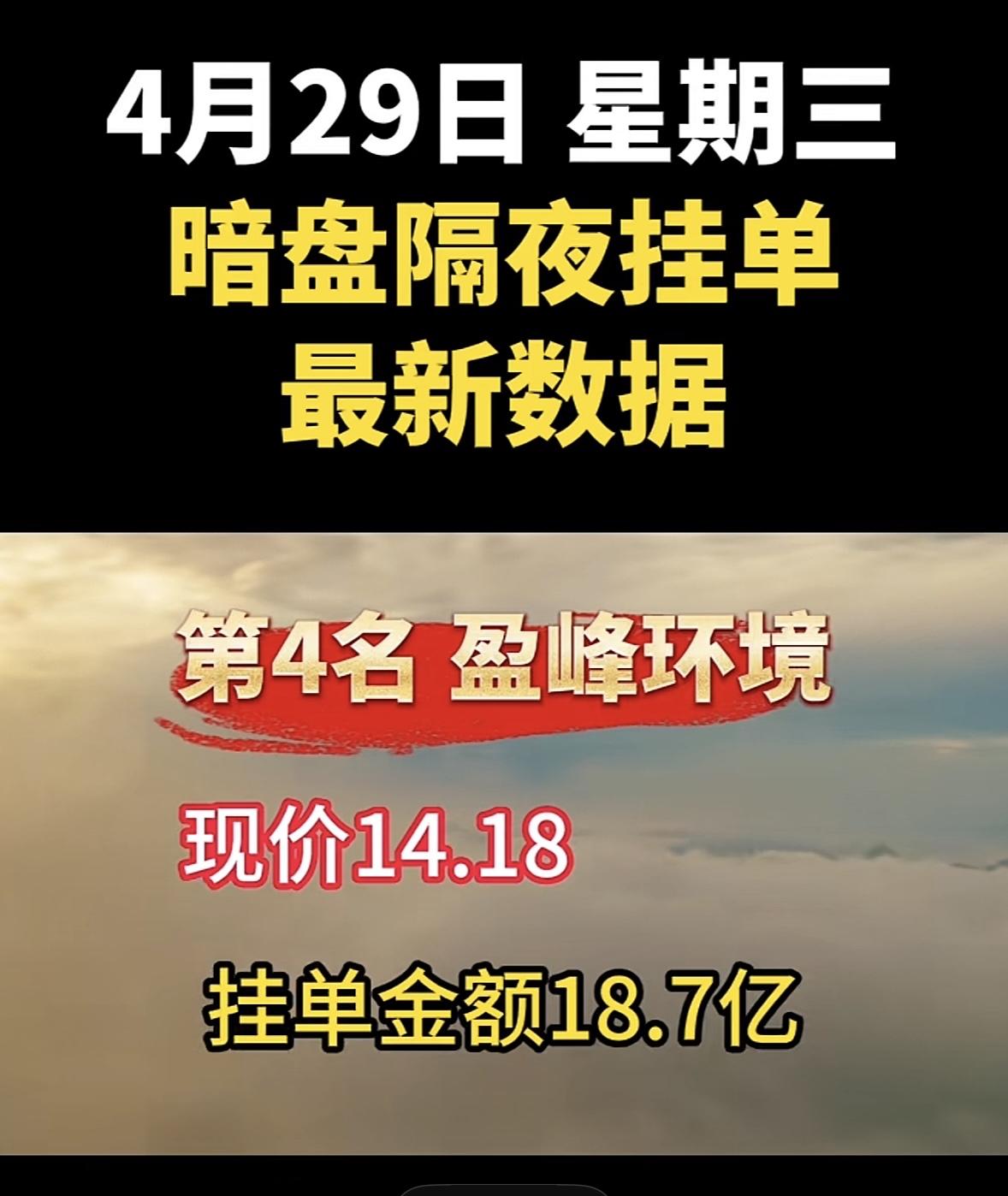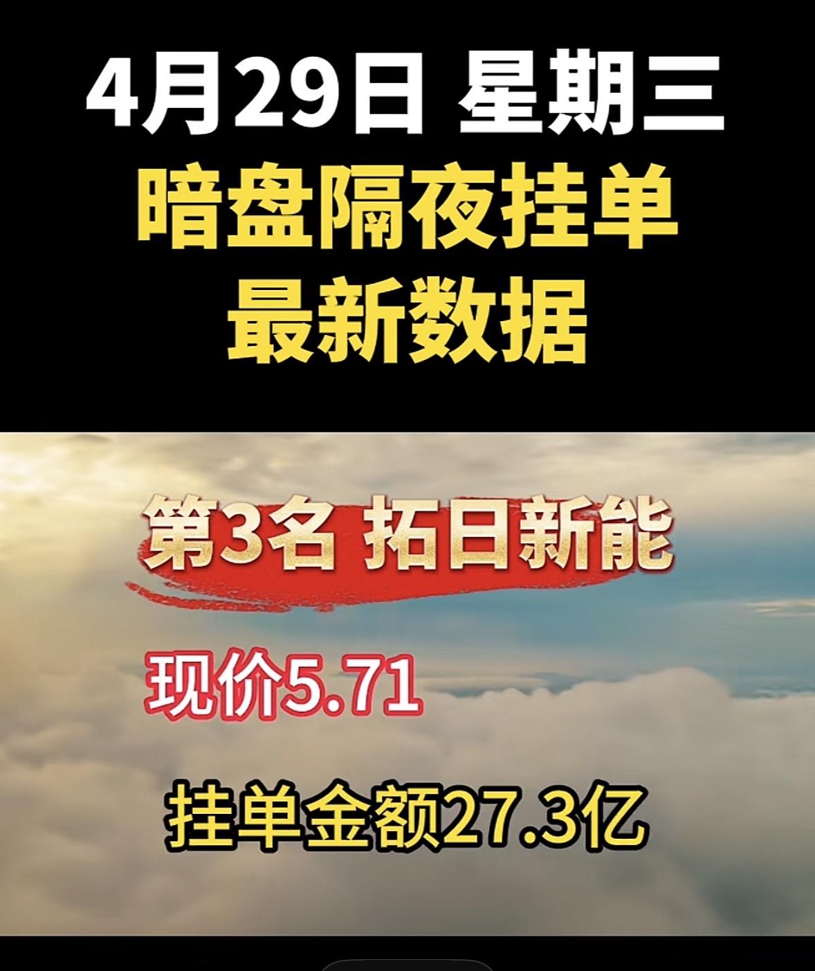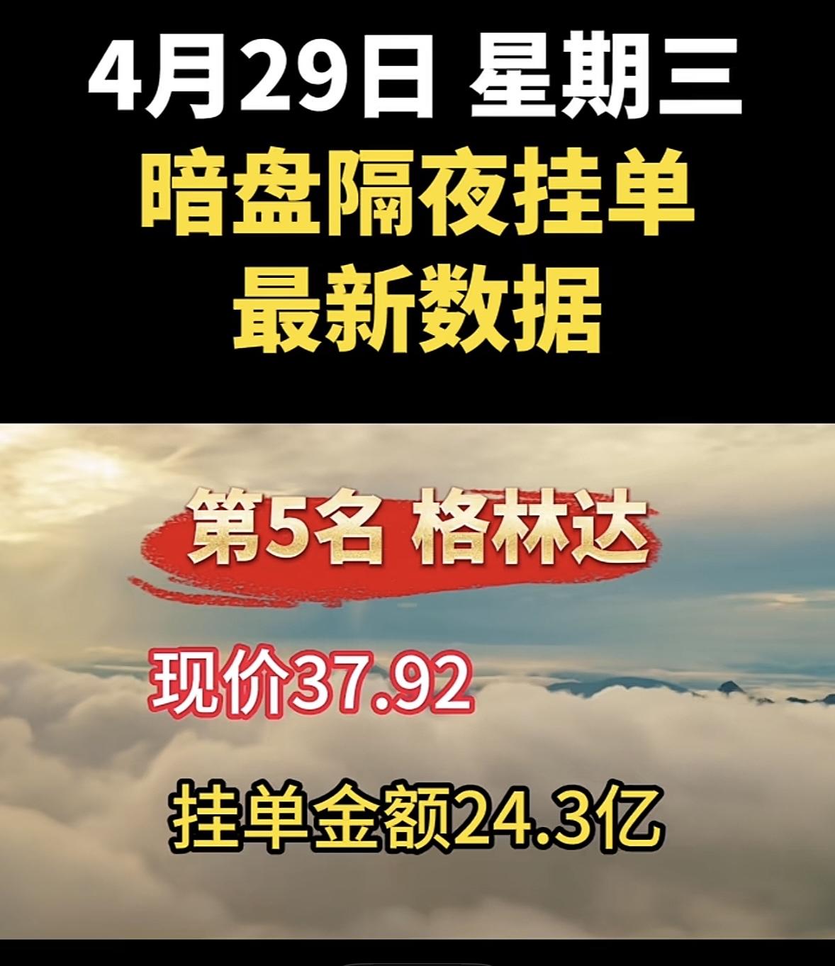 4月29日周三暗盘隔夜挂单排行榜揭晓