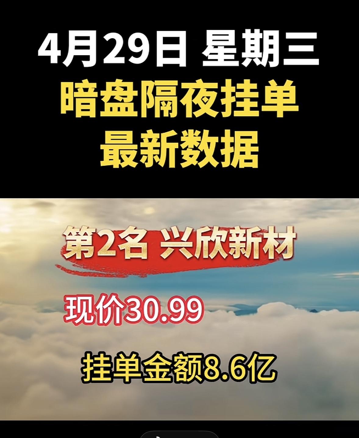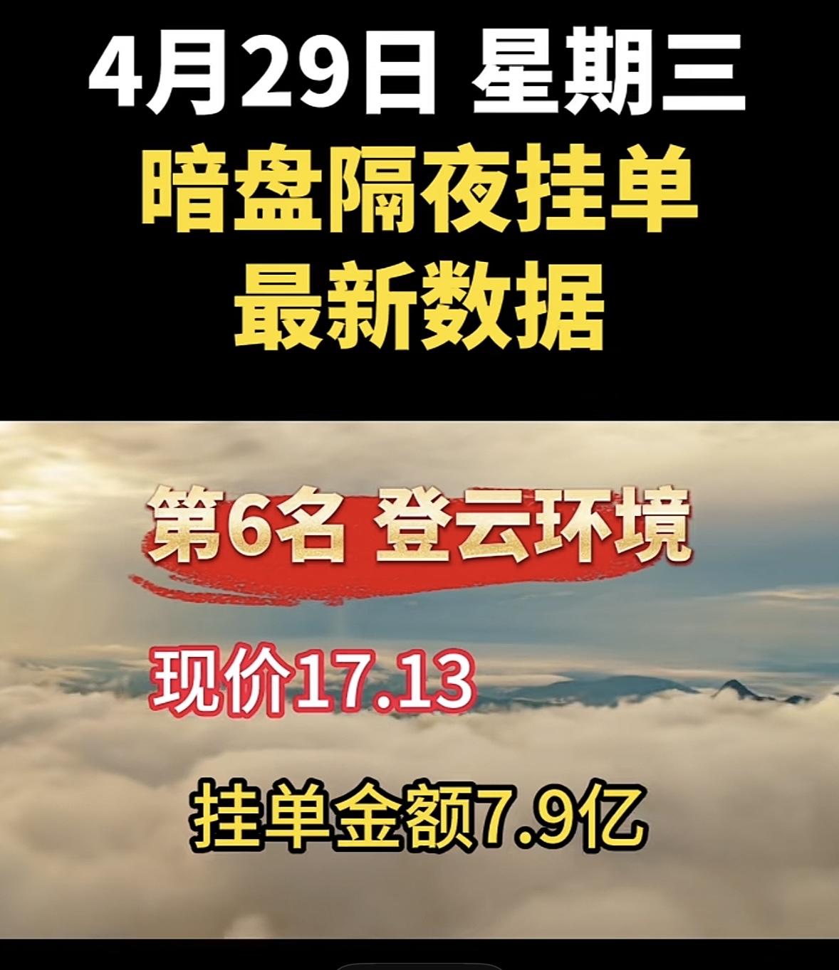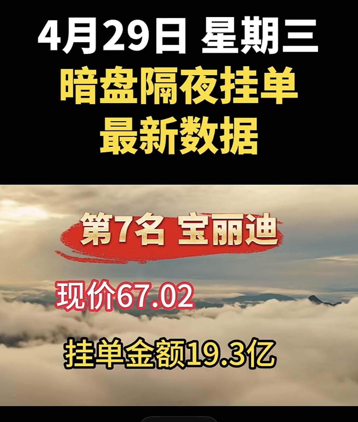 4月29日周三暗盘隔夜挂单排行榜揭晓