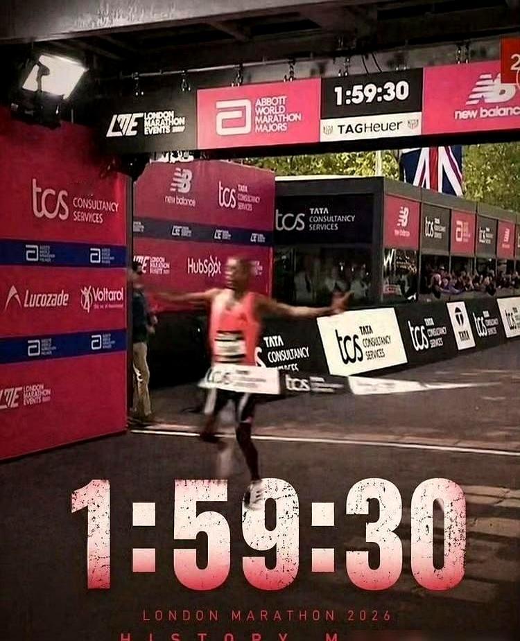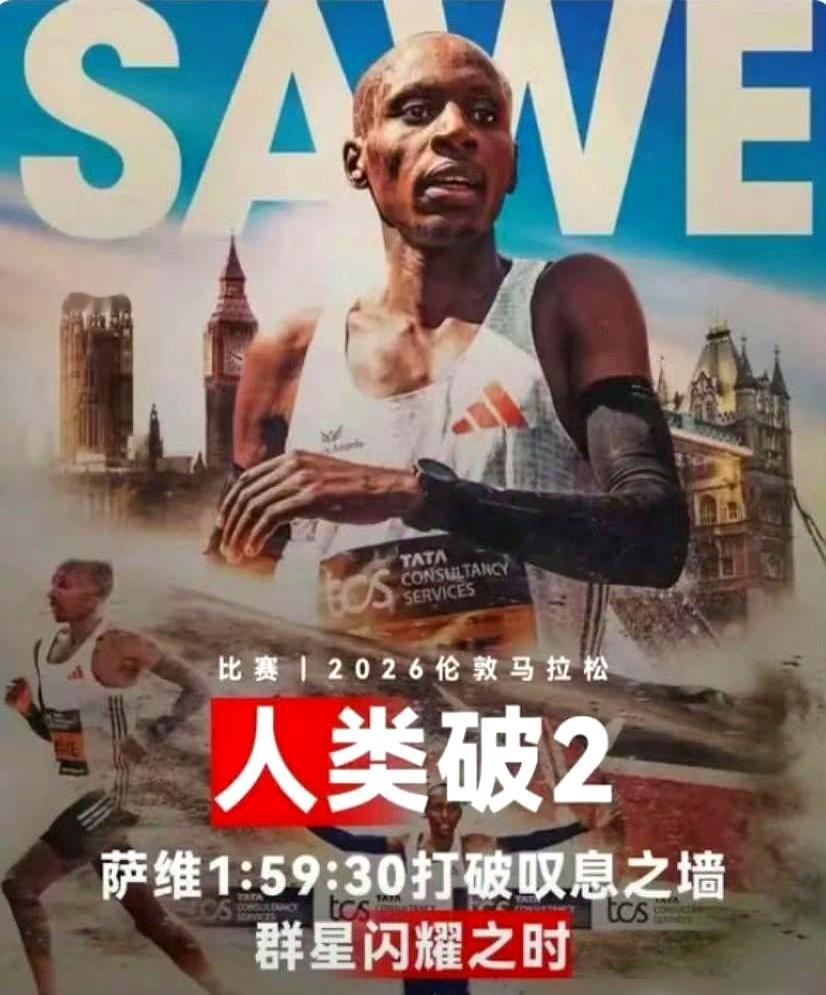 这话刚说完没多久,肯尼亚猛人塞巴斯蒂安·萨维就在伦敦马拉松上,直接把时间定格在1小时59分30秒。
