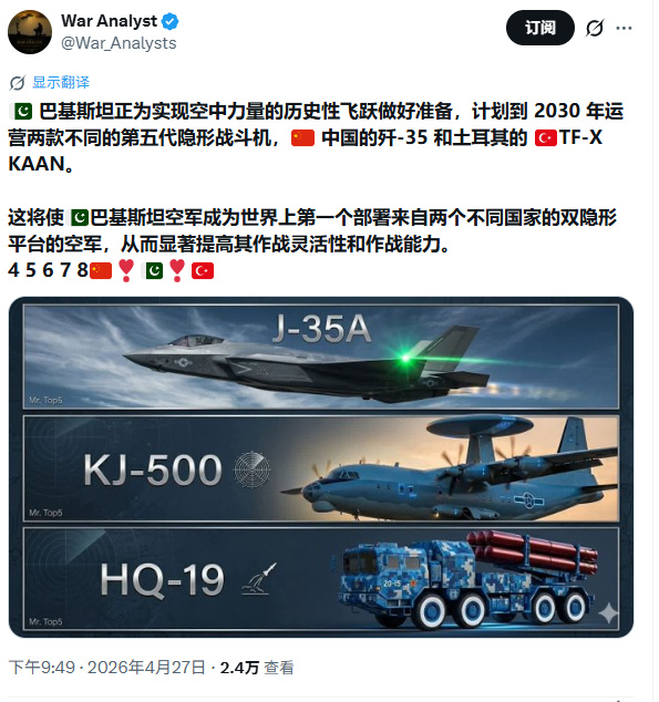 两个大国“伺候”他一个,巴空军或将同时装备2款五代机!即便是在确定要从中国采购外