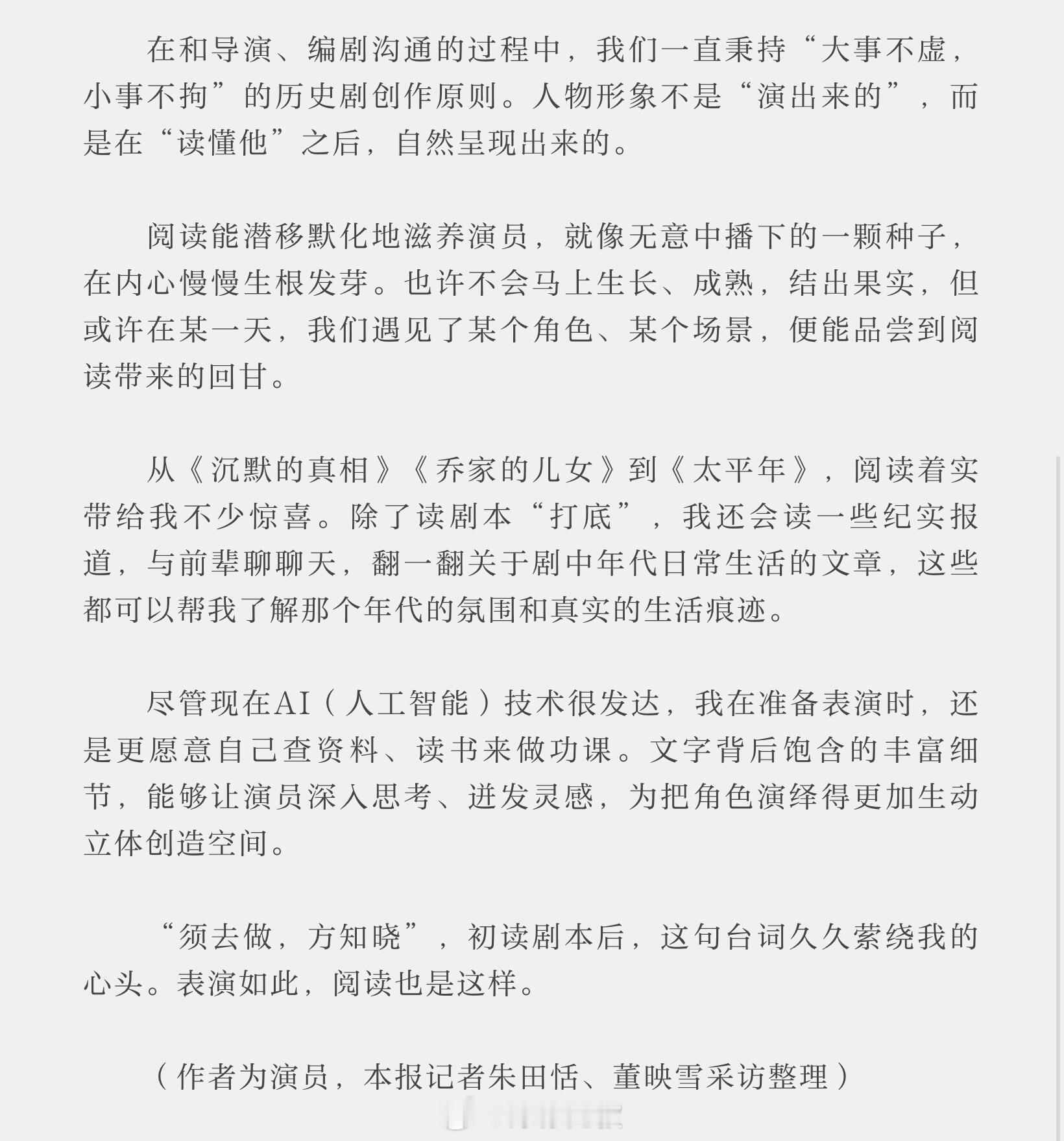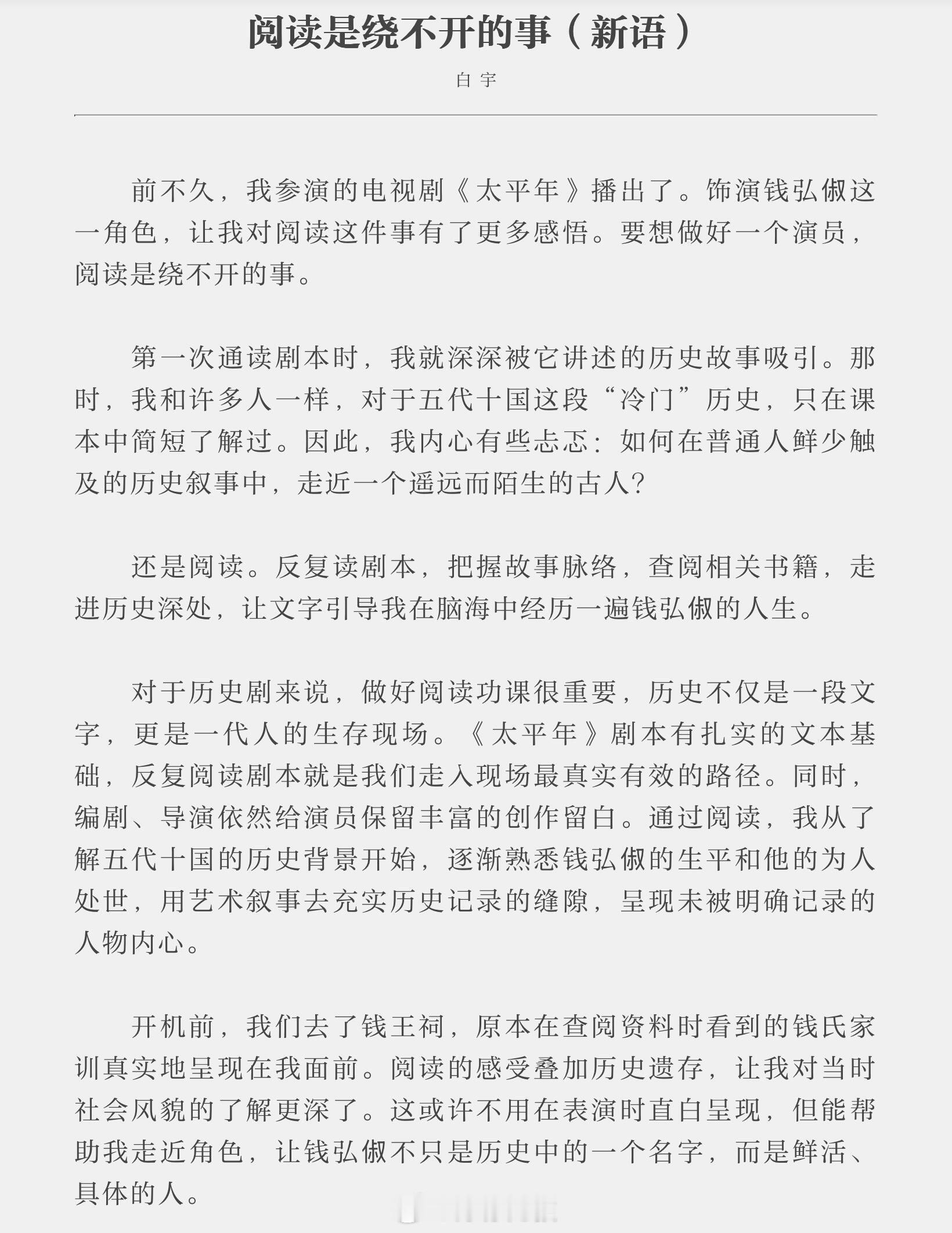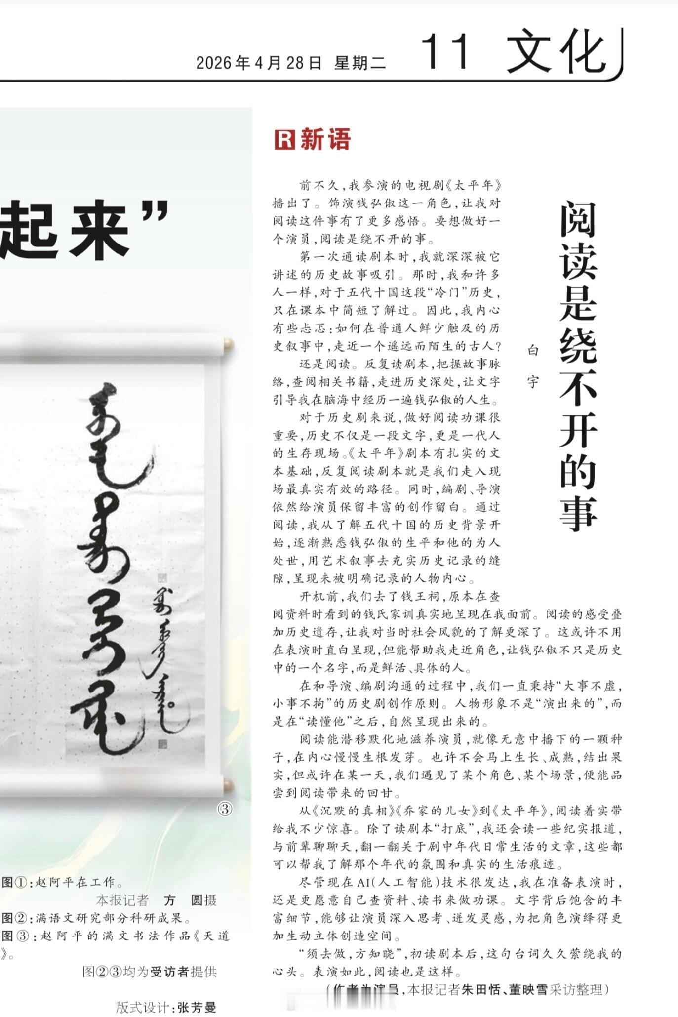 白宇:好演员绕不开阅读摘自20260428人民日报。