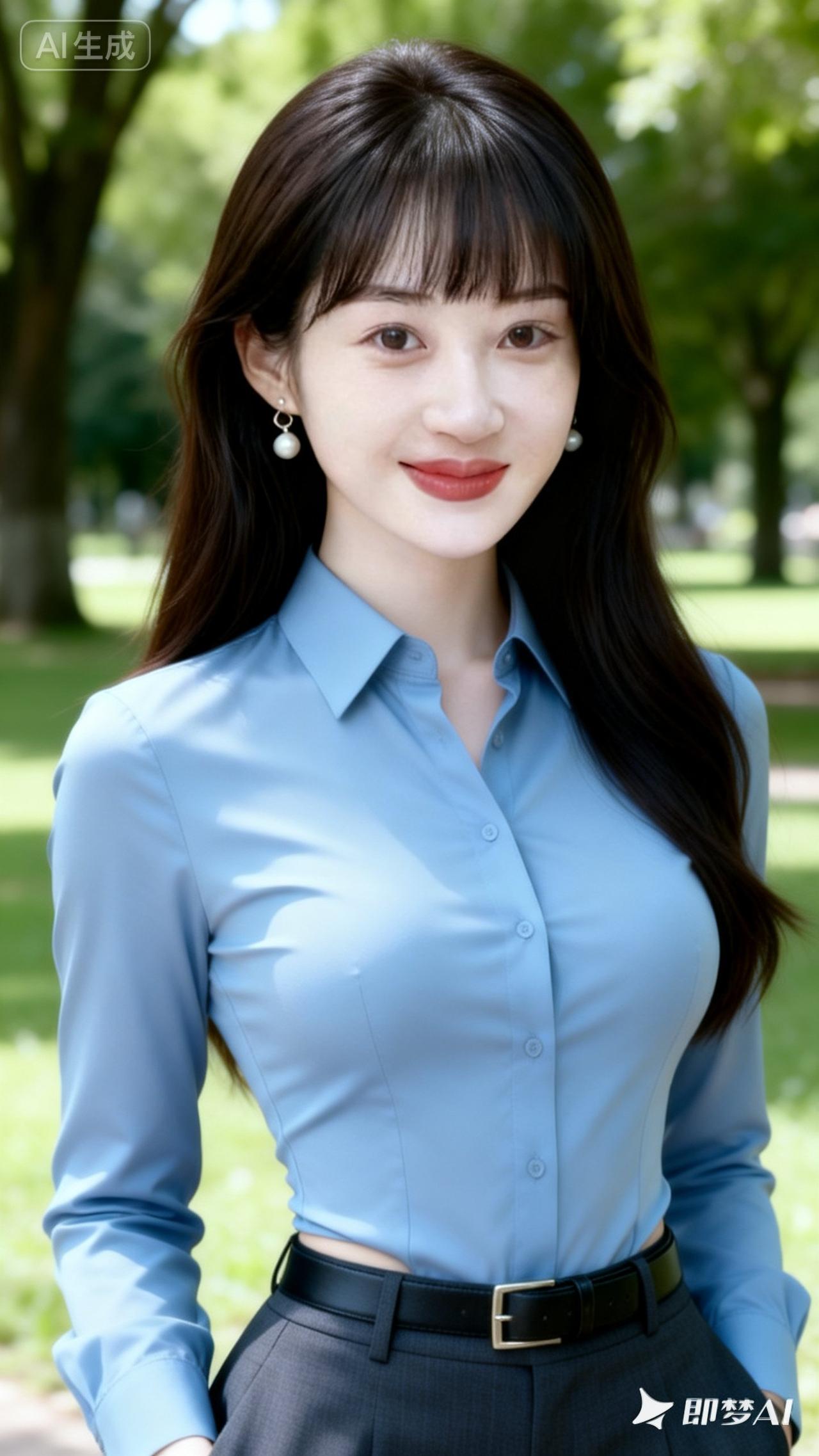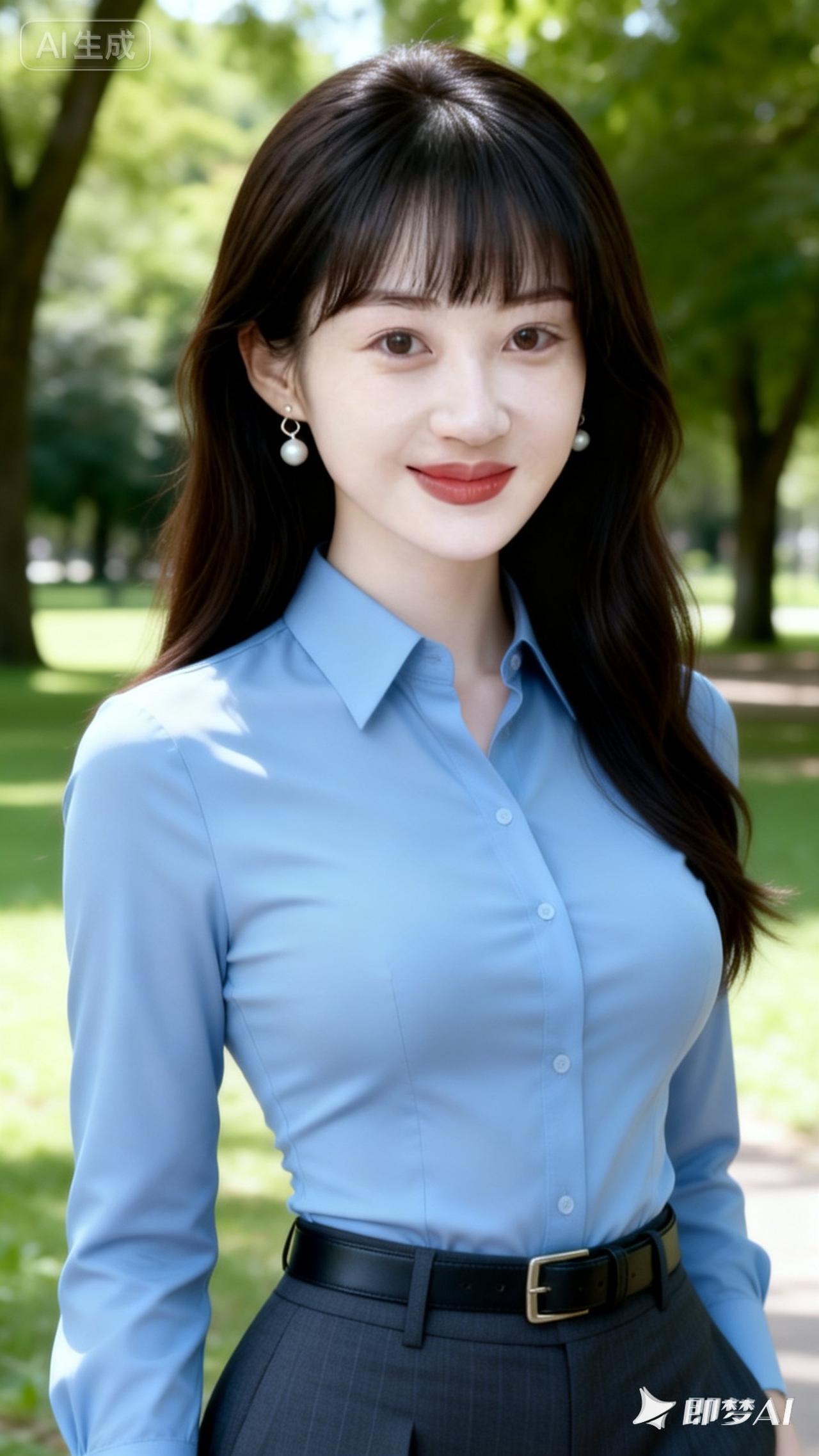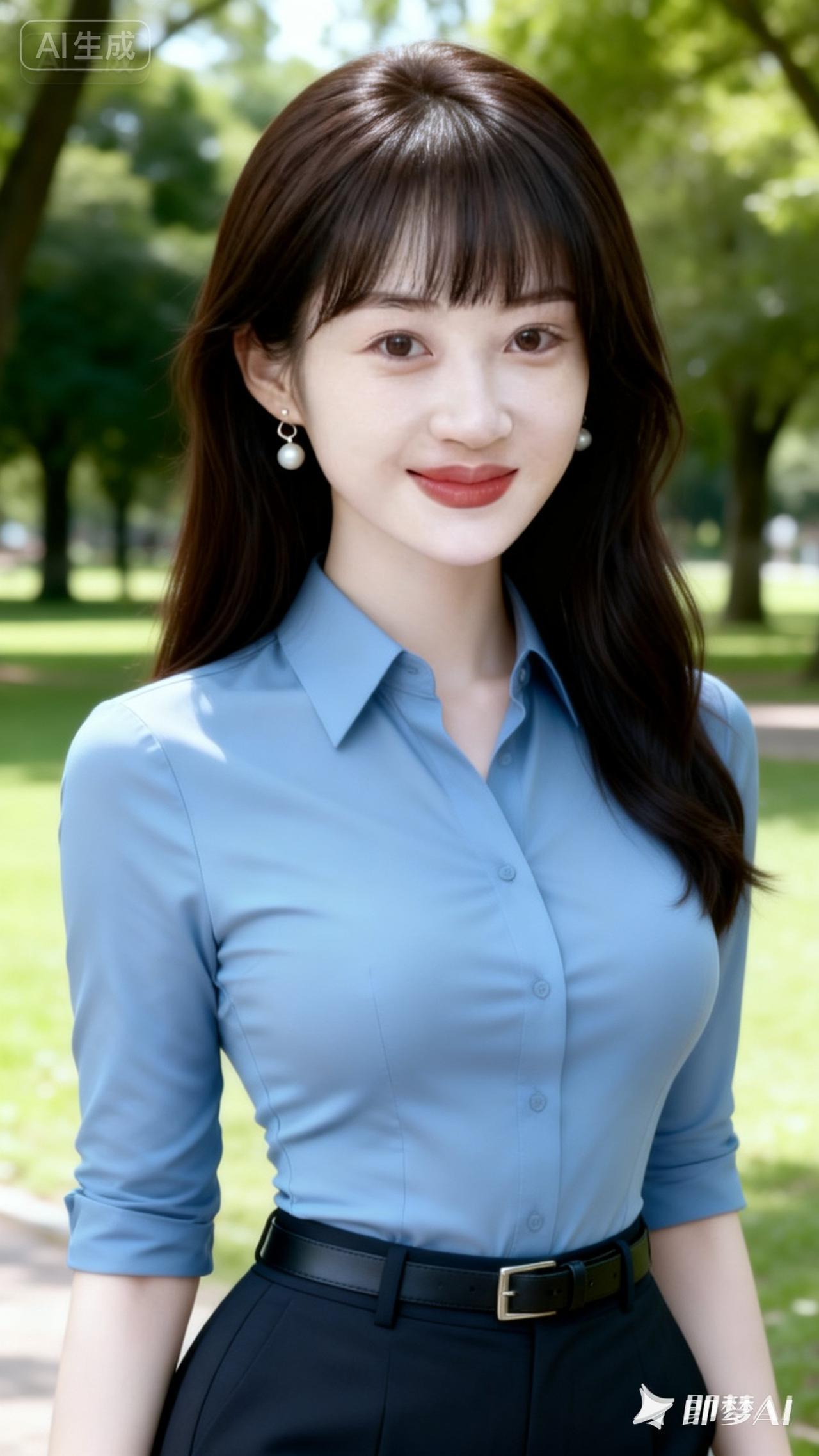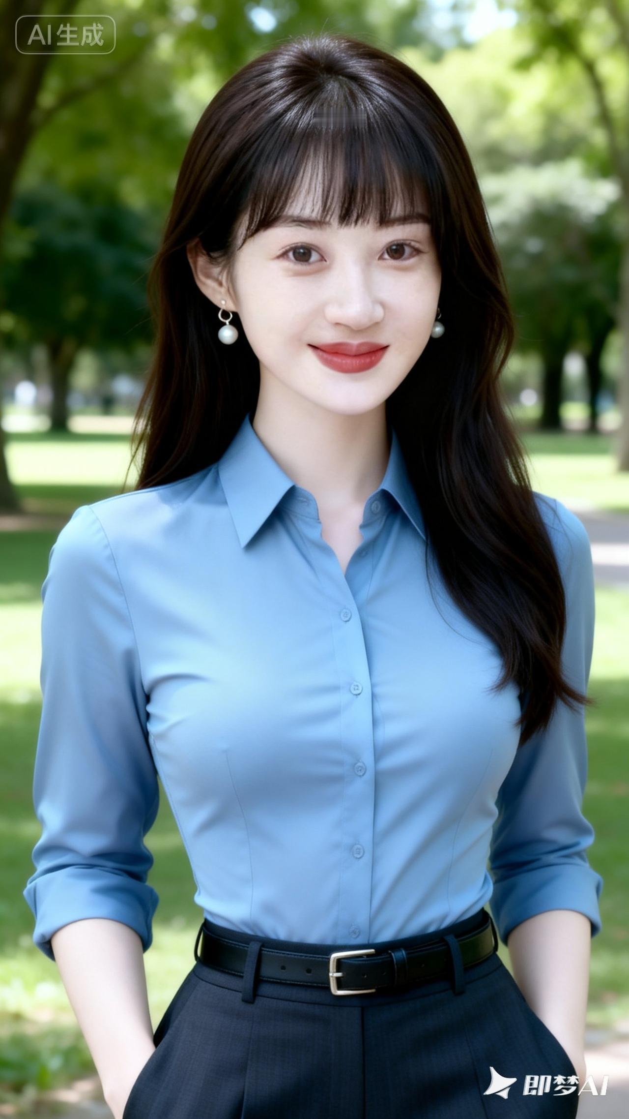 职场优雅风,蓝色衬衫搭配黑色裙子,自信满满!💼✨