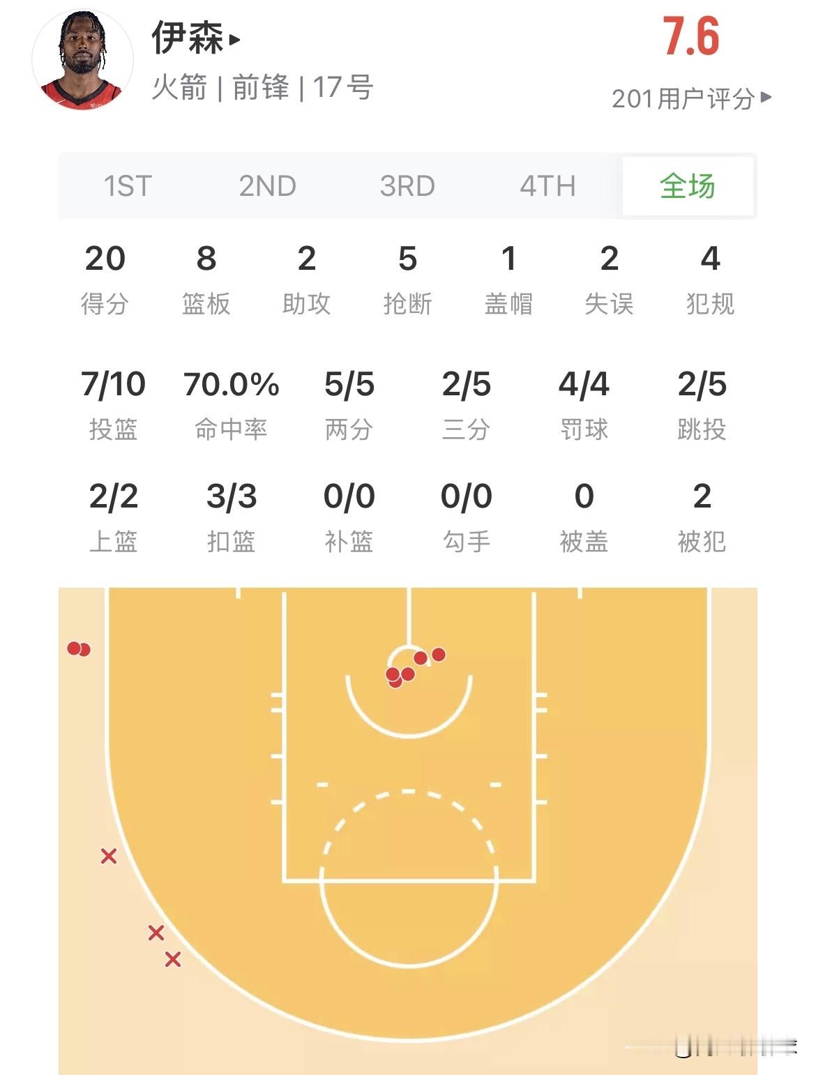 火箭队新星伊森这场表现完全配得上一份顶薪级别的大合同!在今天火箭客场1...