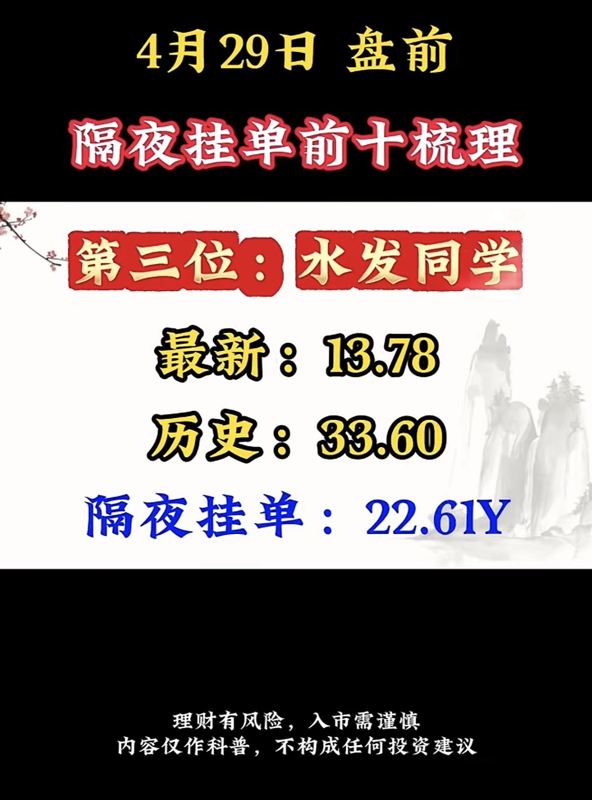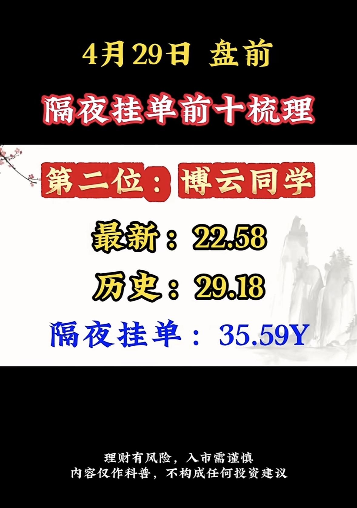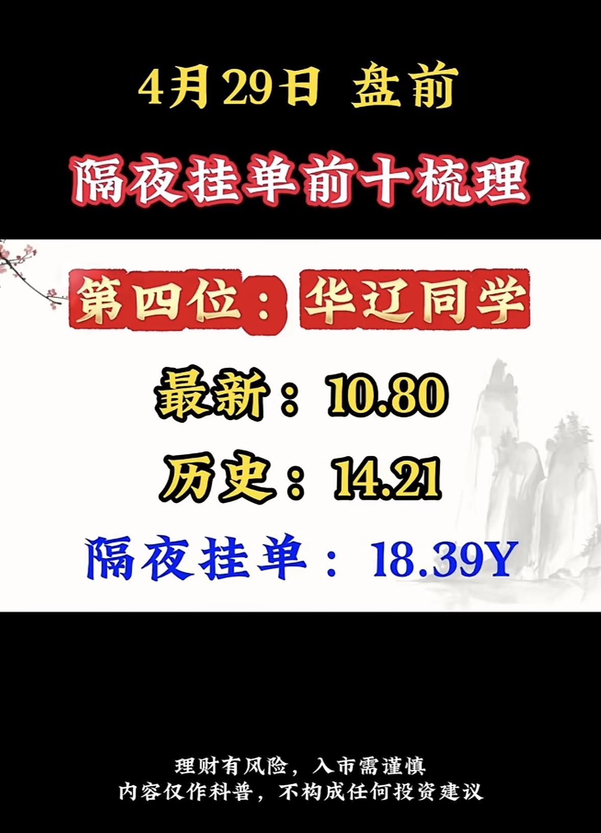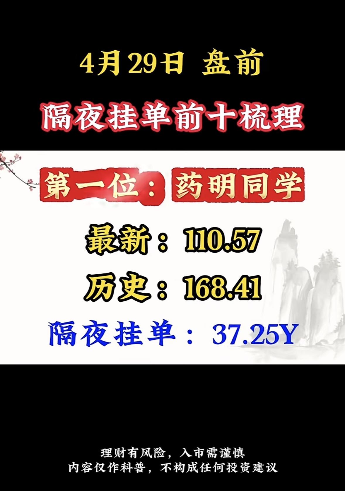4月29日周三暗盘隔夜挂单排行榜揭晓