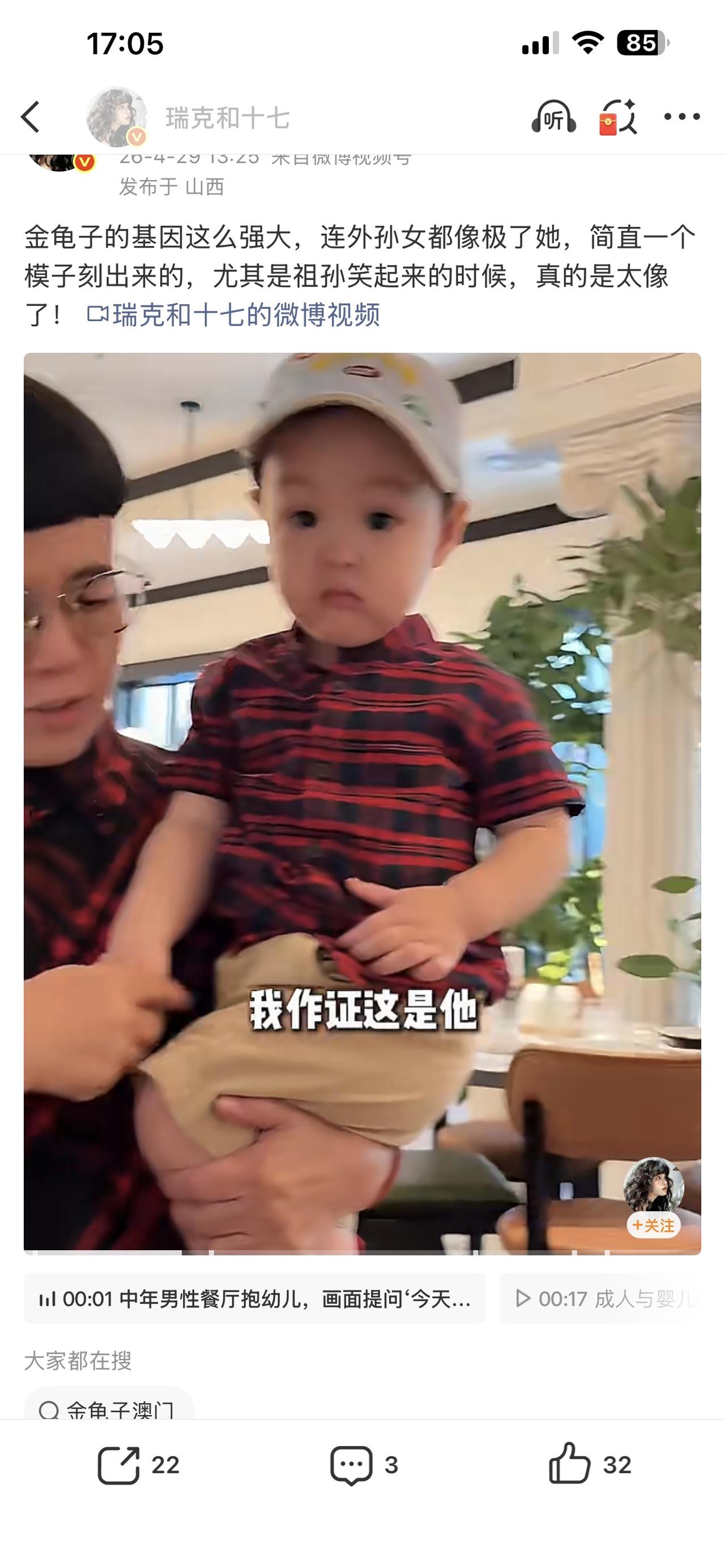 这哪是长得像,这简直是把“金龟子宇宙”给传承下去了!看着小家伙那标志性的笑容,仿佛穿越回了守在电视机前等动画片的童年。不得不说,这就是血脉里自带的魔力,不仅遗传了长相,连那份独有的喜感和快乐都完美复刻了,这大概就是最神奇的隔代亲吧!
