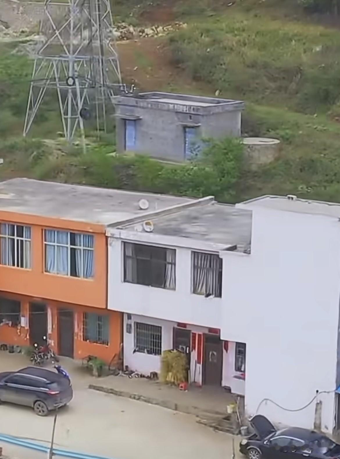 这户人家山脚下建房🏠 这房子如同卵生姐妹, 只是穿的衣服的颜色不同而已。 同一
