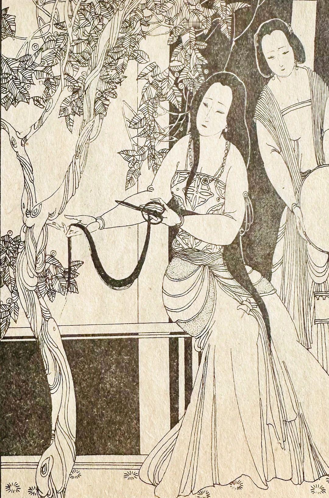卢延光的风格很适合《长生殿》这样的故事,被誉为现代连环画艺术中的经典之作,他用针管笔替代传统毛笔,线条干净流利、刚柔并济,形成“铁线游丝”般的细腻效果。