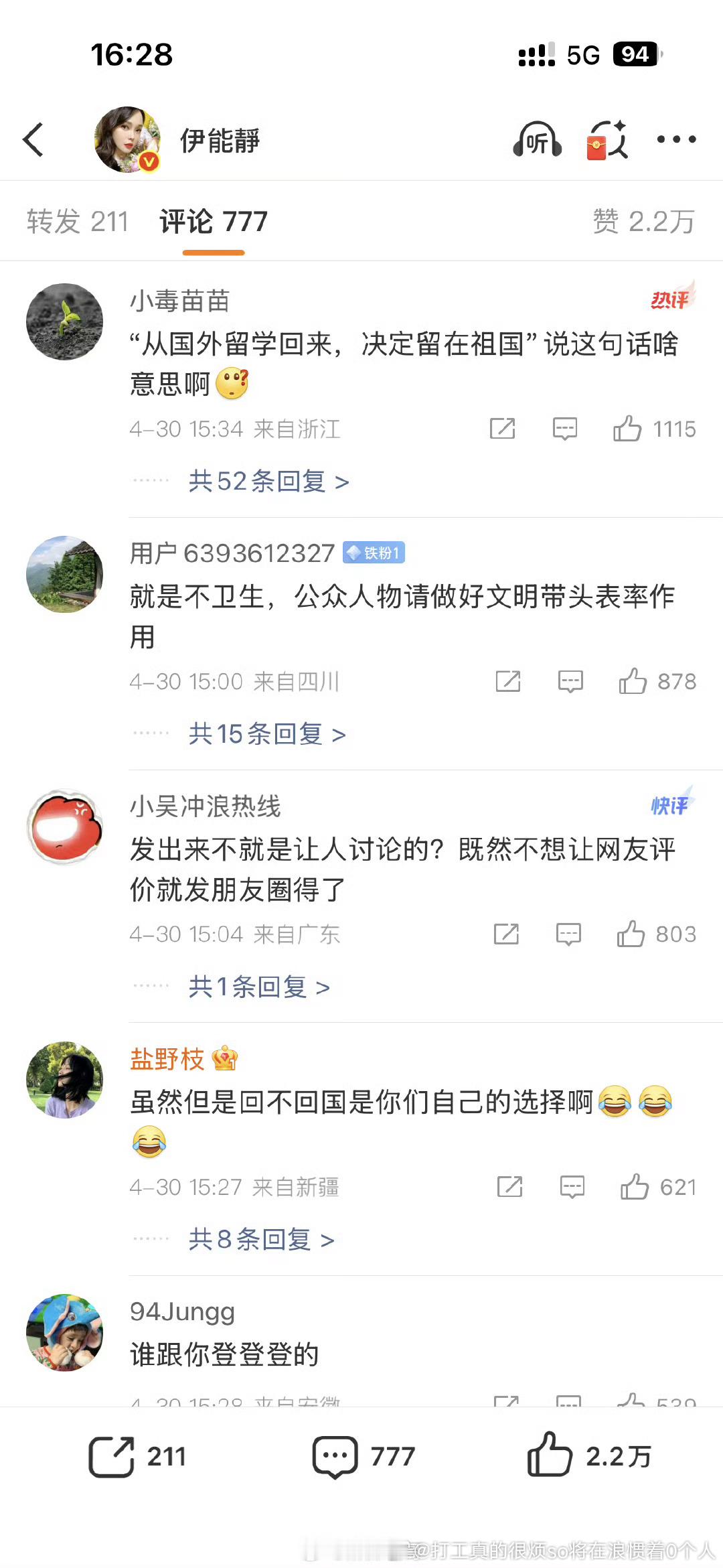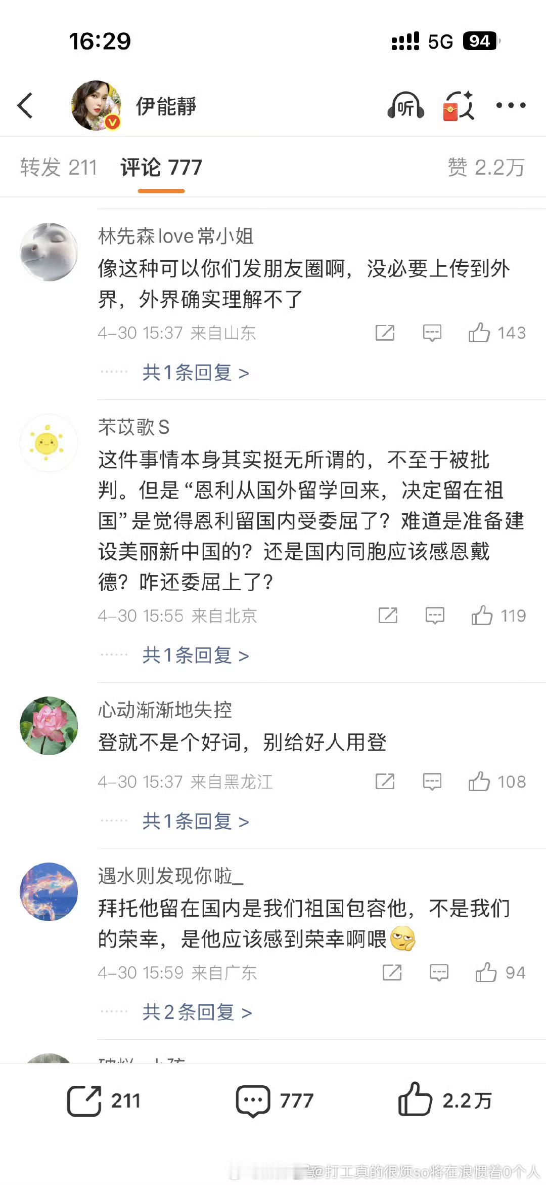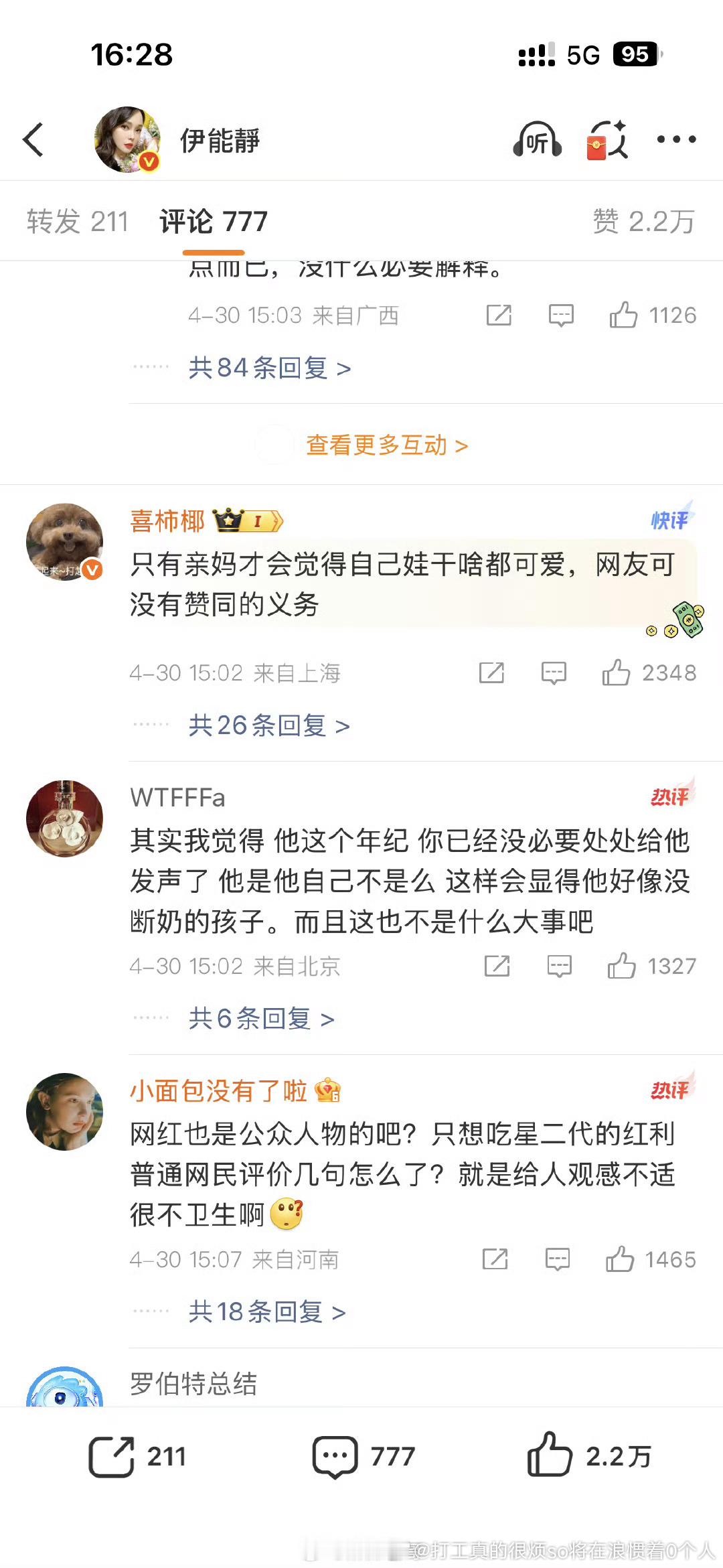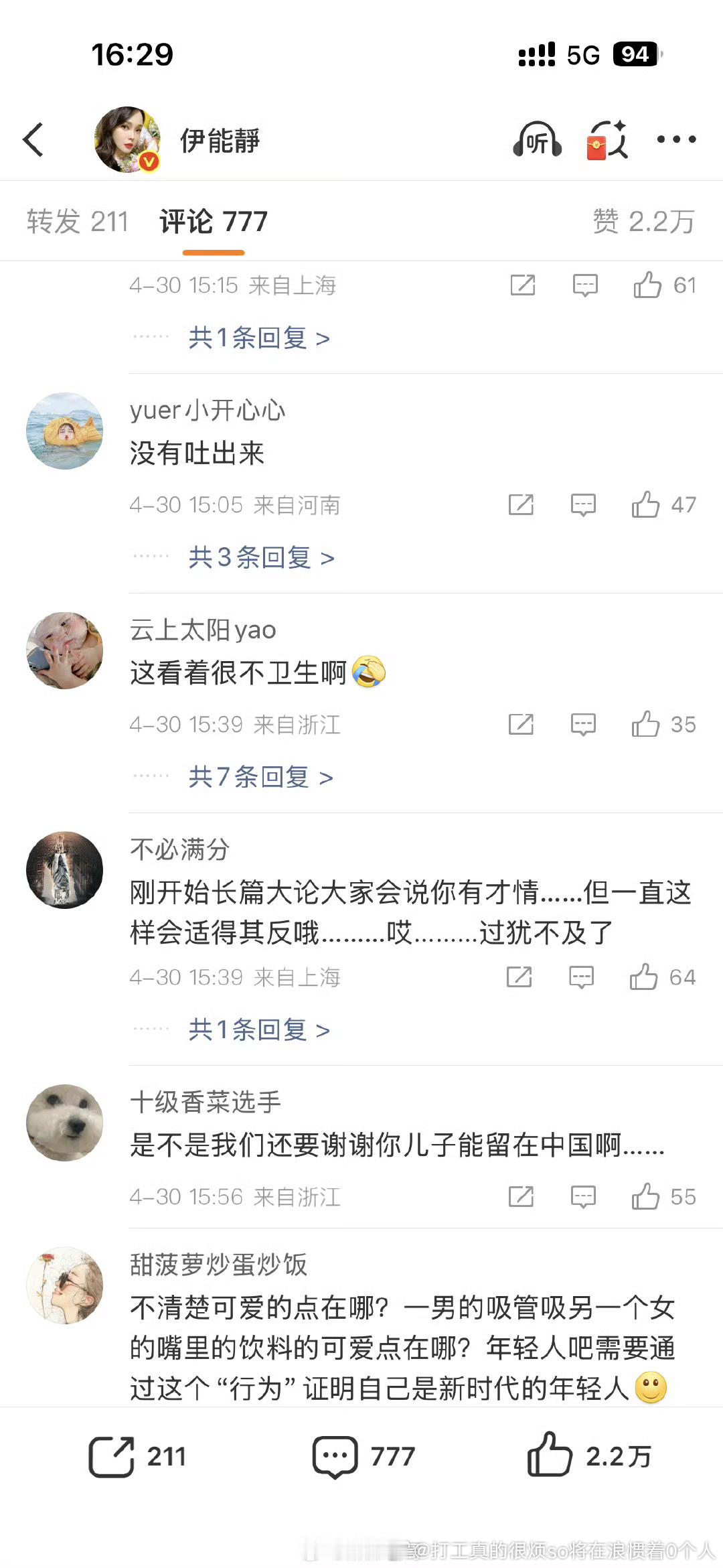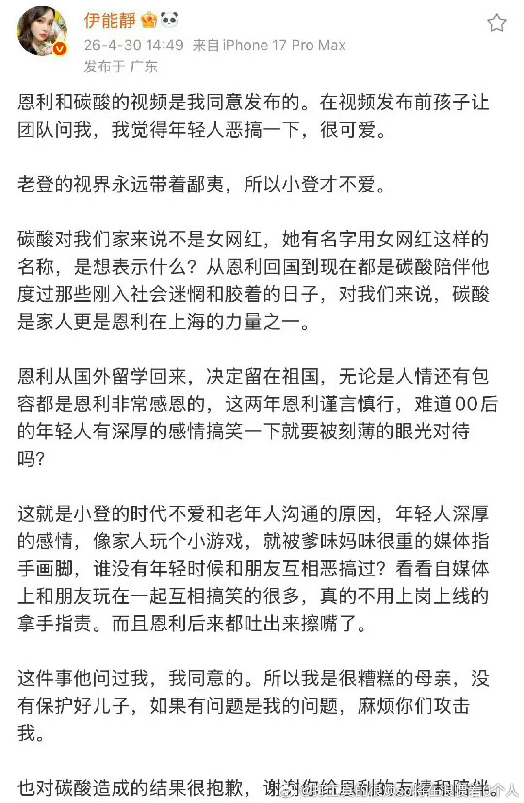 伊能静这个奔6老太叫网友老登就很搞笑了但是你能看出伊能静这种过气明星都多傲慢其实就是透露着浓浓的我儿留洋太子回国还不通通跪下、你们穷比土老帽人懂什么时髦竟敢点评我们真性情太子和郡主互动的味儿明星们优越感拉满看点儿过期和现在爱情故事就对这些人有滤镜的就是厦🖊