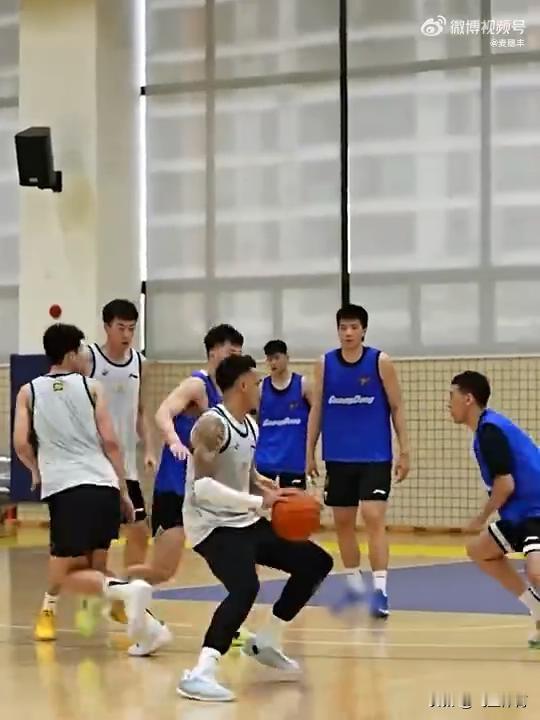 宏远放出球队备战视频,不管教练还是球员,大家都神情专注,听从教练布置的战术。