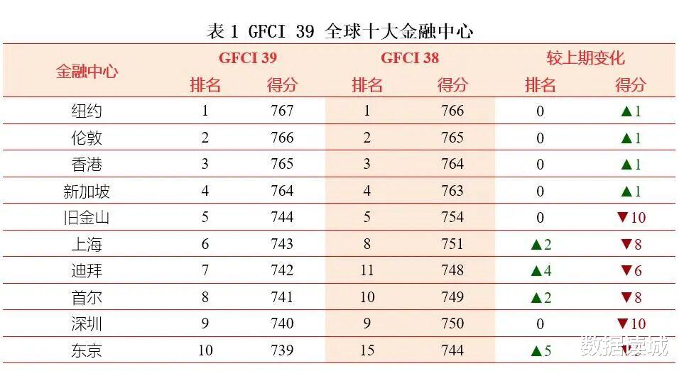 “第39期全球金融中心指数报告(GFCI 39)”已于近期发布,全球前五金融中心城市格局未变,中国香港地区仍以低于纽约(2分)、伦敦(1分),高出新加坡(1分)的成绩排名全球第三。