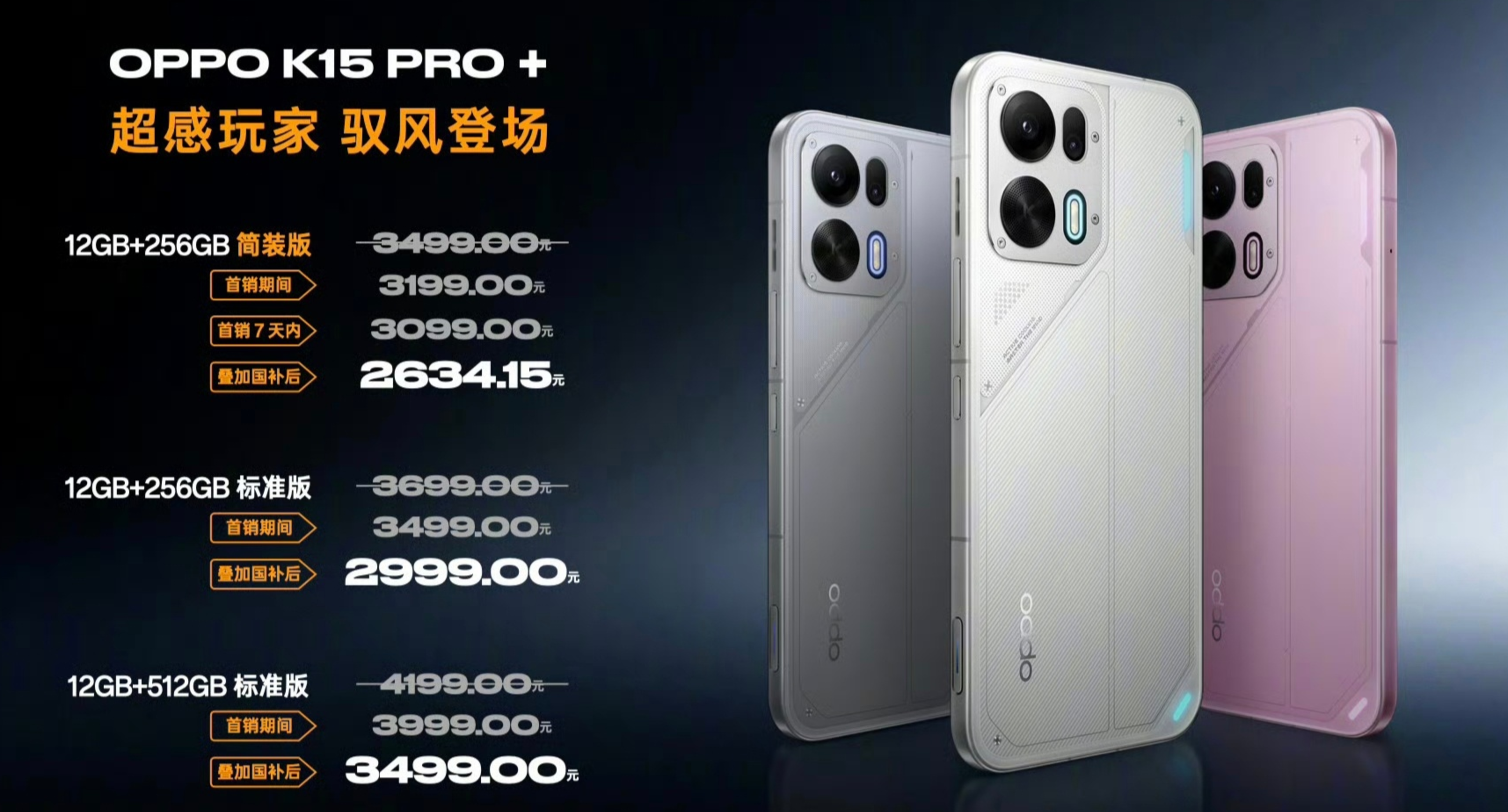 OPPO今天发布了K15Pro系列,这次只有K15Pro和K15Pro+,并没有标准版K15,看来K系列也要冲高端了。