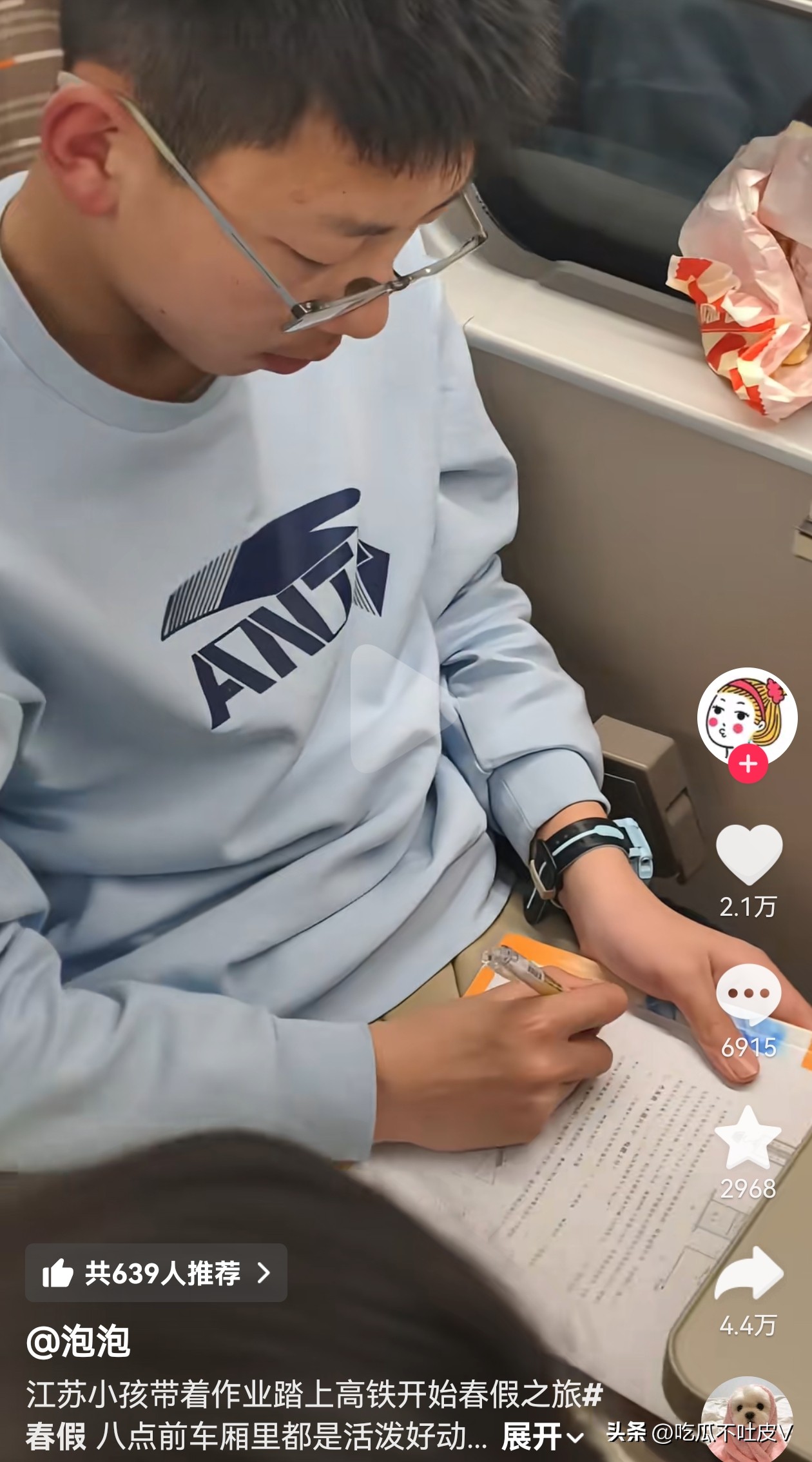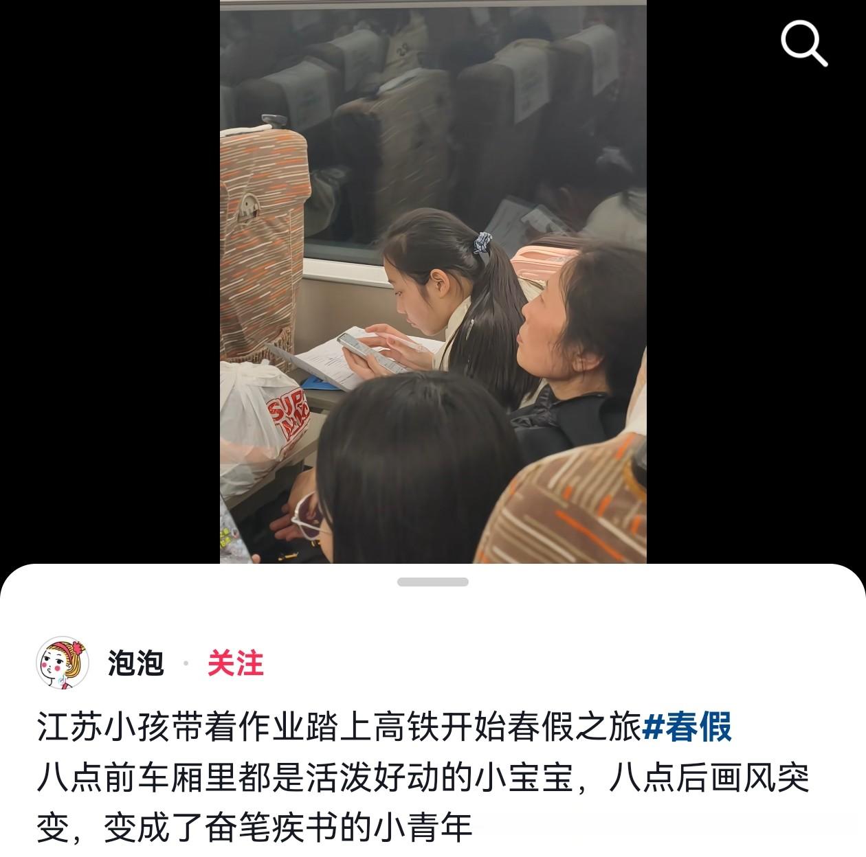 哈哈哈!江苏的孩子是真累啊!高铁上还要写作业。