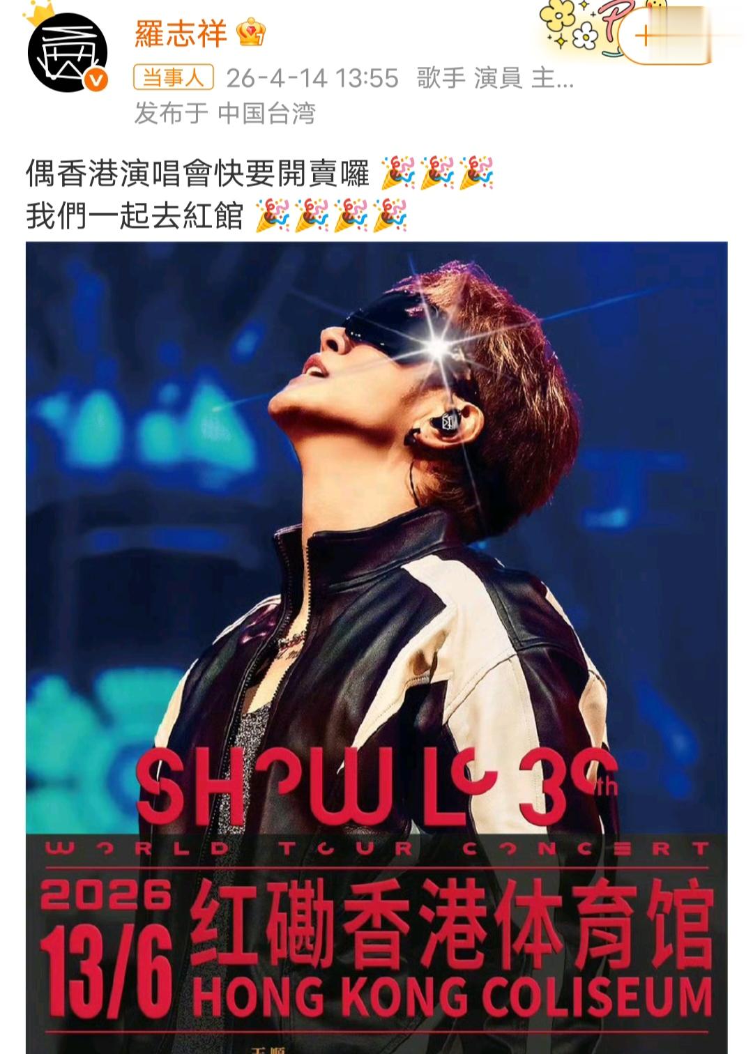 罗志祥本人下午13:55分,紧急更新微博,宣传6月香港红馆演唱会,给粉丝传递一个事实:我还活着呢!