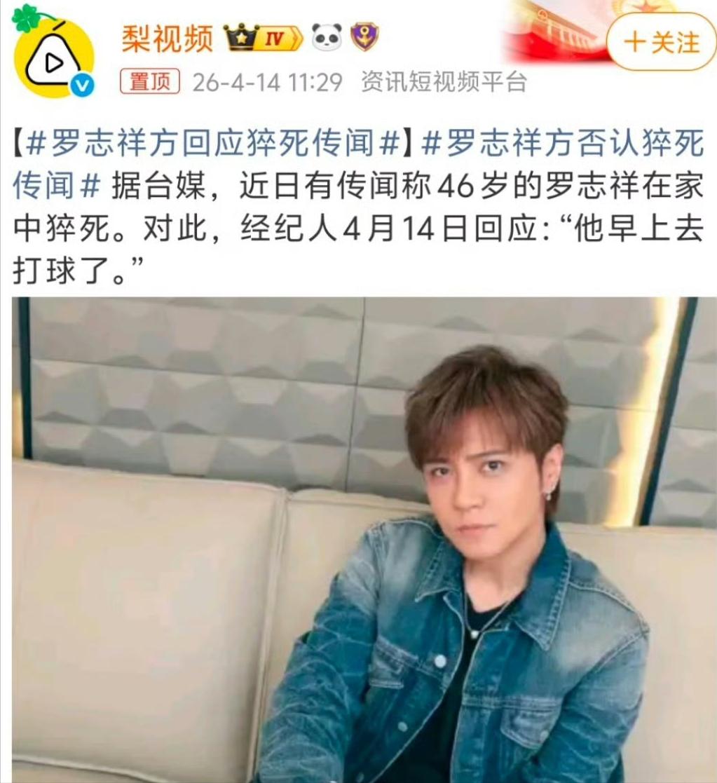 2026年4月14日,台媒突然散布"46岁罗志祥家中猝死"的消息,造谣者还贴心的伪造出"喂食过晚""送医不治"等细节,真真假假、虚虚实实让人难以分辨。
