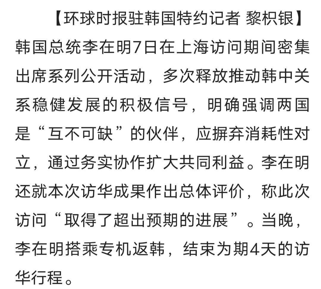 结束访华前,李在明称韩中关系“互不可缺” 人民网 2026.1.08