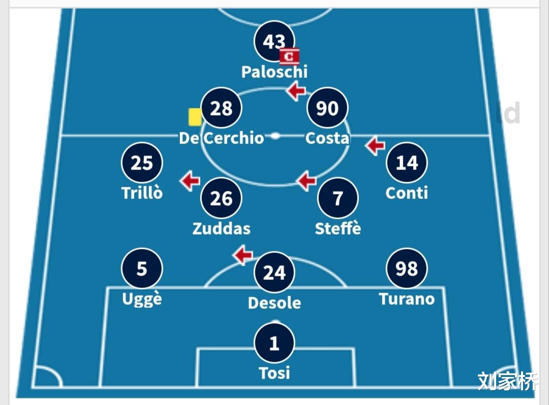 此役,35岁的前尤文球星道格拉斯科斯塔身披90号球衣代表切沃首发出场,和他一起并肩作战的还有36岁的前AC米兰前锋帕罗斯基,最终,切沃依靠替补出场的波尔托卢西的进球全取三分。