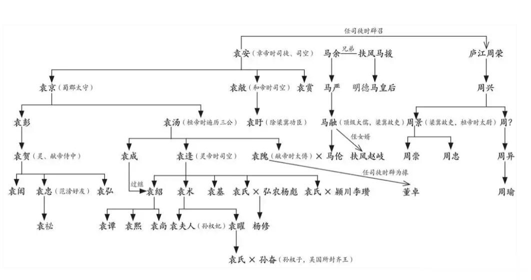 这一脉络显示,汝南袁氏自章帝朝发迹,历经和帝、安帝、桓帝,至灵帝朝达于极盛又骤然衰落,其兴衰与东汉中后期外戚、宦官交替专权的政治生态紧密相连。
