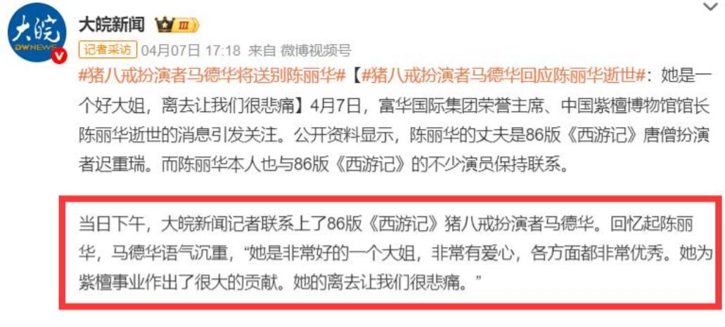 他受访时说,陈丽华热爱传统文化,支持紫檀博物馆,值得敬佩,80岁的马德华也早早到场,离开时忍不住落泪,称陈丽华是好大姐。