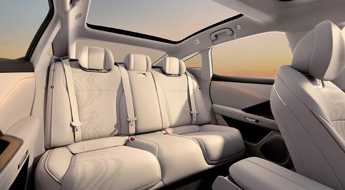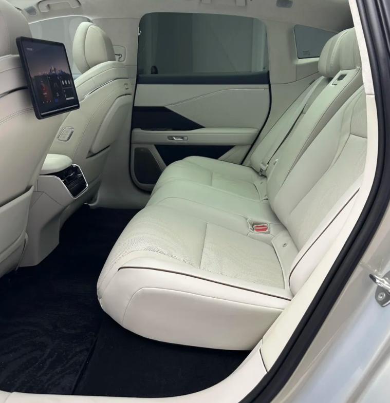 细节方面,中央扶手箱集成50W手机无线充电面板,后排设有触控屏控制空调和娱乐系统,车门采用电动+机械双模式门把手。双层隔音玻璃搭配静谧的纯电驱动系统,车内噪音控制的不错,再加上全景天幕的通透视野,驾乘舒适度直接拉满。内饰整体设计以东方意蕴为灵感,色彩淡雅,既展现了新能源时代的科技感,又保留了丰田一贯的舒适与可靠品质。