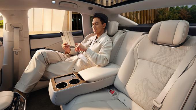 作为一款主打家用的D级纯电旗舰,铂智7主打的是满座的舒适感,而且也有“大沙发”。副驾配备零重力座椅,支持多向调节,一键零重力模式能轻松将身体调整至舒适角度,缓解长途驾驶疲劳。座椅下方预留空间,方便乘客放置脚部,提升腿部舒适度。超长轴距直接带来了越级的后排乘坐空间,正常坐姿下膝部空间可达三拳以上,即使高个子乘客也能舒展双腿。后排座椅靠背还支持大角度调节,瞬间提升乘坐舒适性。