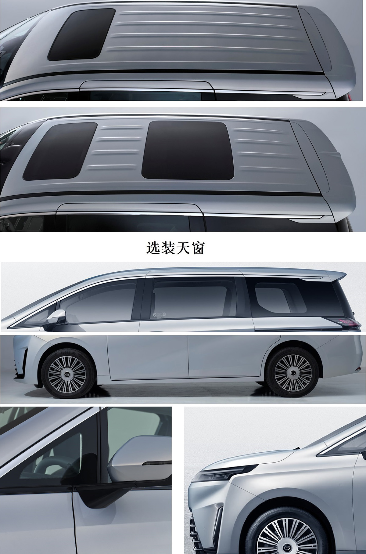 车身侧面部分的整体造型和传祺E8基本一致,使用了双侧侧滑门结构,会有单天窗和双天窗版本。车身尺寸方面,新车的长宽高分别为5000/1900/1778mm,轴距为3000mm。