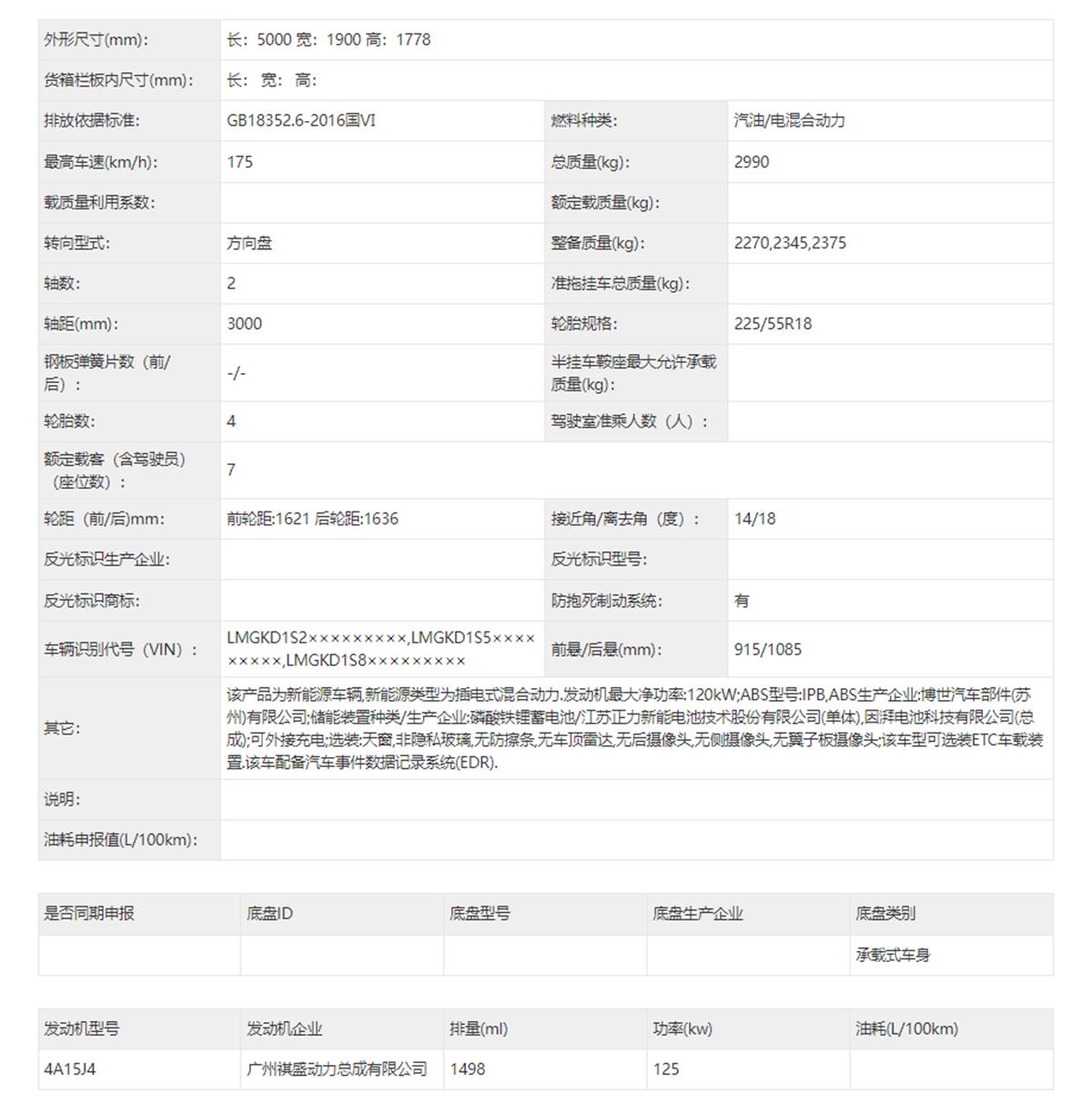 动力方面,新车搭载的是1.5T发动机+电机组成的插电混动系统,其中发动机最大功率125kW,匹配的是江苏正力提供的磷酸铁锂电池。