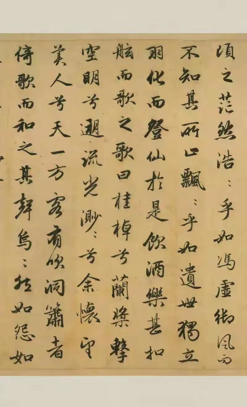 赵孟頫笔下的《赤壁赋》,不只是对苏轼千古名篇的笔墨再现,更是对魏晋风流的致敬与传承。它将文人旷达情怀、笔墨雅韵与自然意境融为一体,历经七百余年岁月洗礼,依旧光彩夺目,成为中国书法史上熠熠生辉的不朽经典。