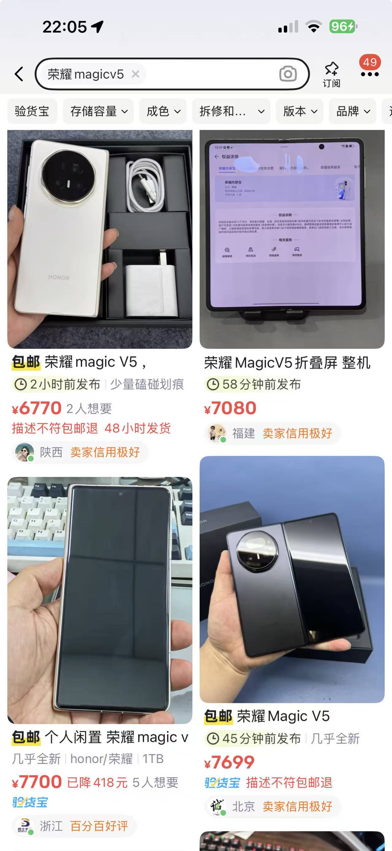 个人在海鲜市场看了一下,7000出头就能选到成色不错的16+512G版本荣耀Magic V5,再加几百元也能够到最大的16+1T版本,比起全新的V6,便宜了4000块呢!