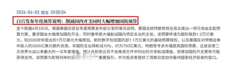 另外要注意,特朗普着急在军费上加码,是为了增加美国的军事实力,对国际局势并不友好。
