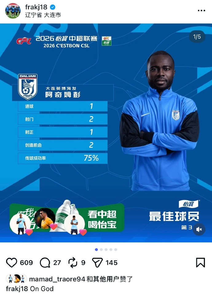 大连的夜,被一粒金子般的进球点燃!当阿奇姆彭在第47分钟门前冷静推射破门时,整个英博球场瞬间沸腾,球迷们挥舞着围巾,嘶吼声震得看台都在颤抖。1-0,大连英博海发用一场酣畅淋漓的胜利,掀翻了中超豪门上海海港!而阿奇姆彭,这个用速度和嗅觉撕开防线的“非洲猎豹”,也毫无悬念地当选本轮最佳球员,真是如此吗?