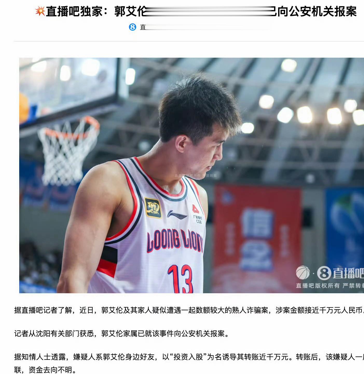 4月5号开始,网上突然疯传“郭艾伦遭熟人诈骗近千万”的消息。