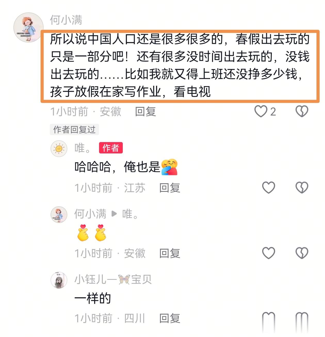 这一幕瞬间戳中了无数网友的笑点,大家纷纷在评论区开启“吐槽大会”:“真相了!现在的小朋友春假比大人忙,爸妈主打一个带薪陪玩/请假陪玩”“我怀疑全国的打工人都被藏起来了,只露出了小朋友”“建议春假改名为‘全国家长逃班实录’”。