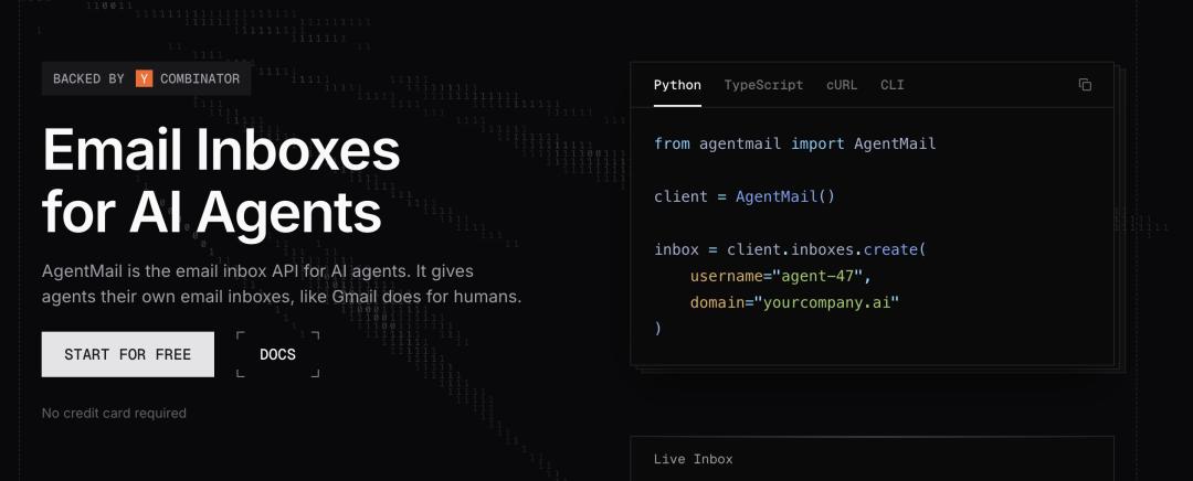 沿着这个缺口跑出来的典型项目,是在3月份时刚完成600万美元种子轮融资的AgentMail。它的方向非常直接:给AI智能体提供可编程的专属邮箱收件箱,让它们能像人一样收发、检索、归档和处理完整邮件线程。