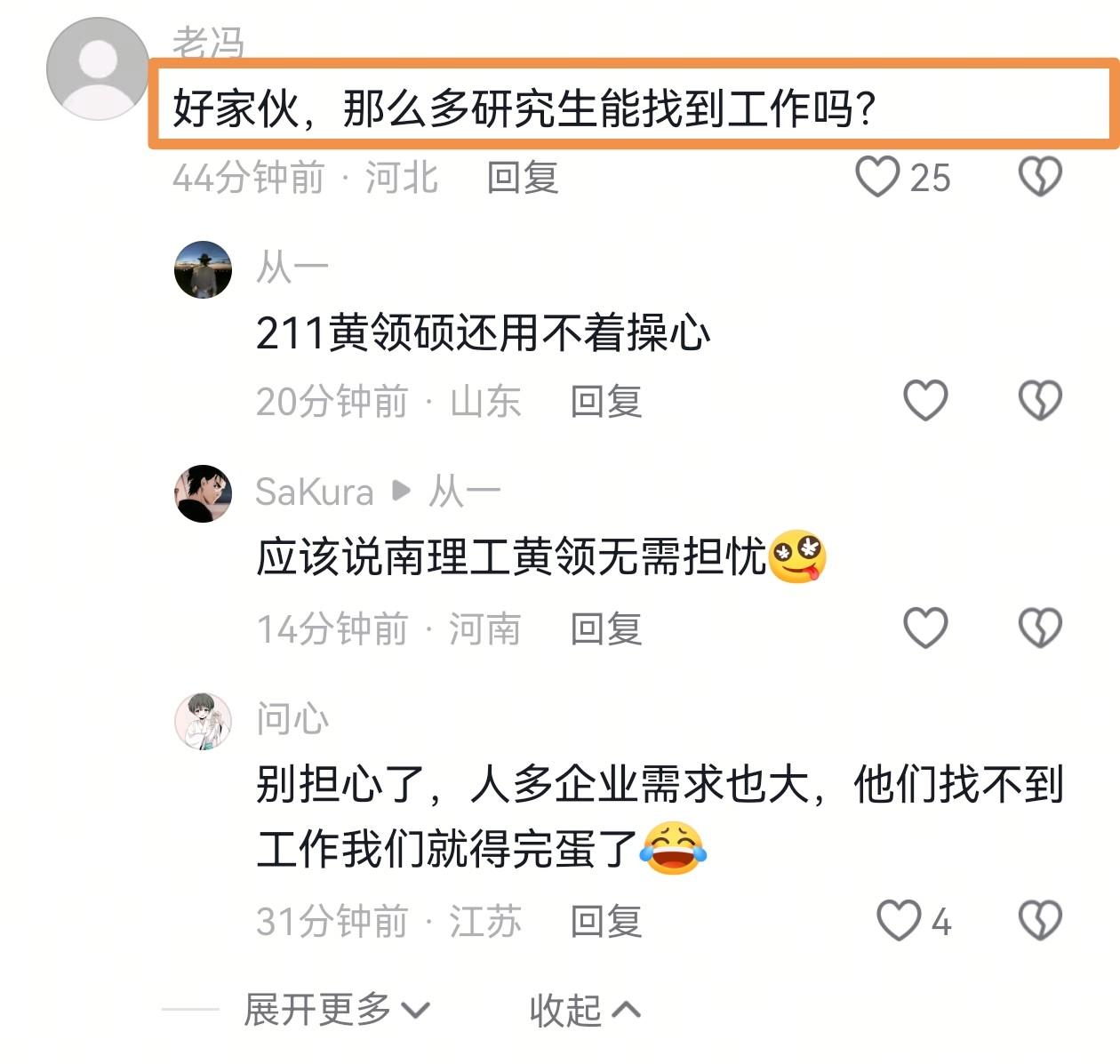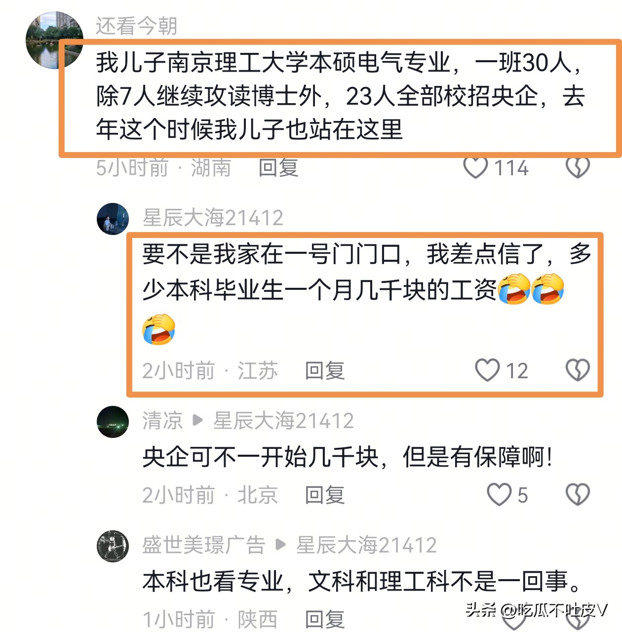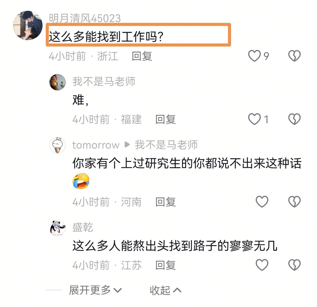 发布视频的同学直接在评论区补了个大瓜:“本人已落实就业,周围工科朋友就业情况还可以,学校里去研究所、军工所、制造业企业的居多,央企、私企大厂也不少,根本不是网上说的‘研究生找不到工作,全送外卖跑滴滴’,更不是月薪三千!”