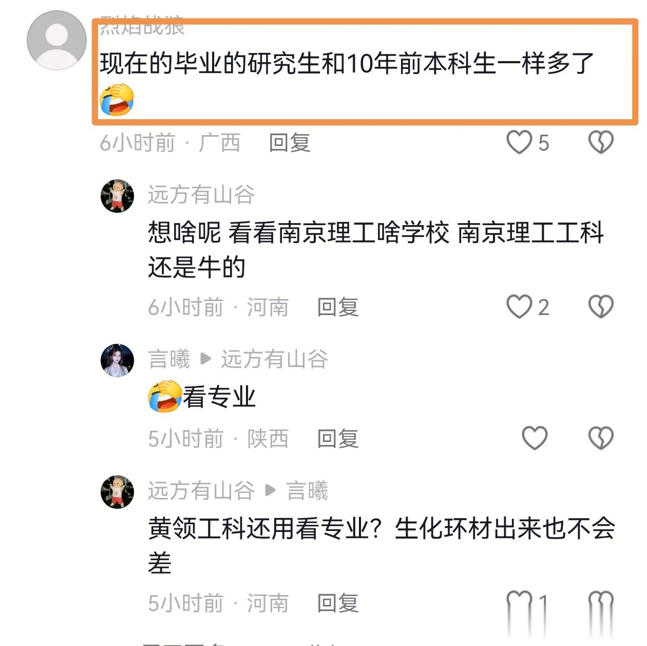 一边是“焦虑党”:“现在研究生遍地都是,学历贬值太严重了,这么多人抢岗位,能不卷吗?”另一边直接回怼:“别瞎操心了!这可是南理工!军工强校,王牌专业一堆,人家研究生根本不愁找工作!”