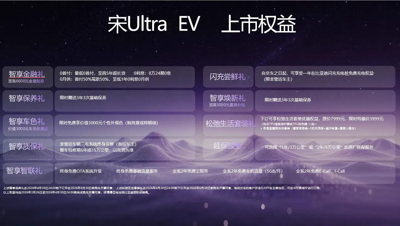 如果说闪充是宋 Ultra EV 的 “心脏",那么710km超长续航、B级舒享大空间、全维智能安全则构成了它强健的体魄与细腻的关怀。在15万级市场,比亚迪用“入门即满配" 的理念,重新定义了家用SUV的价值底线。