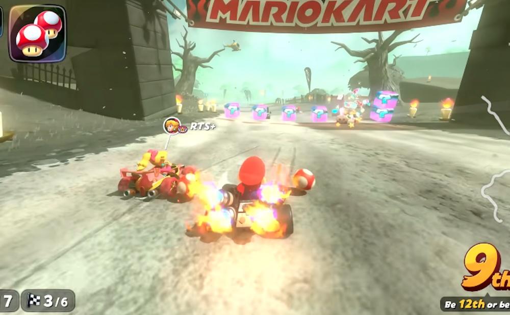 在马力欧赛车游戏里,吃到“蘑菇”就会喷火加速。