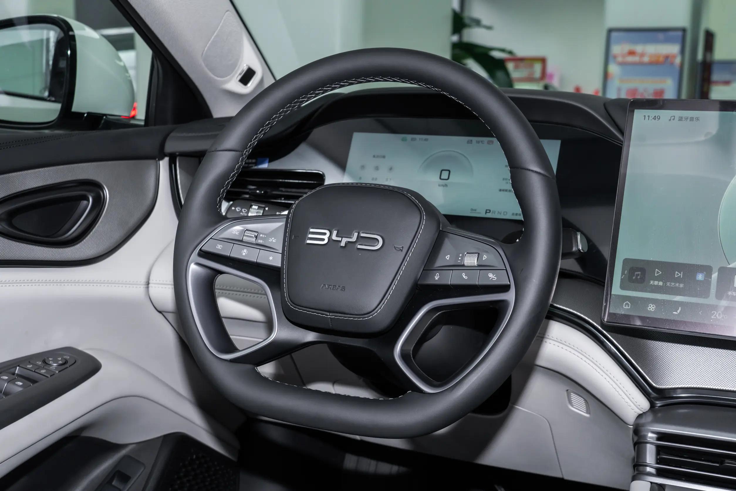 内饰:科技与舒适并存打开车门,坐进车内,首先映入眼帘的是那块 15.6 英寸的悬浮式大屏,尺寸可观,就像一个大号的平板电脑立在那里,特别气派。屏幕下方是一条横向布置的空调出风口,这种设计让中控台的视觉层次更加分明,就像一个精心布置的房间,各个区域都有条不紊。方向盘采用了平底的设计,为车内增添了一些运动氛围,握感也比较饱满,就像握着一个结实的小拳头,让人很有安全感。