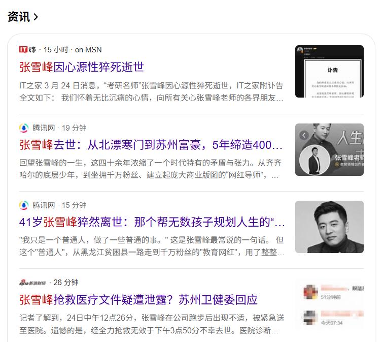 张雪峰离世的消息,最初被不少人当成谣言 .