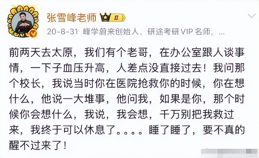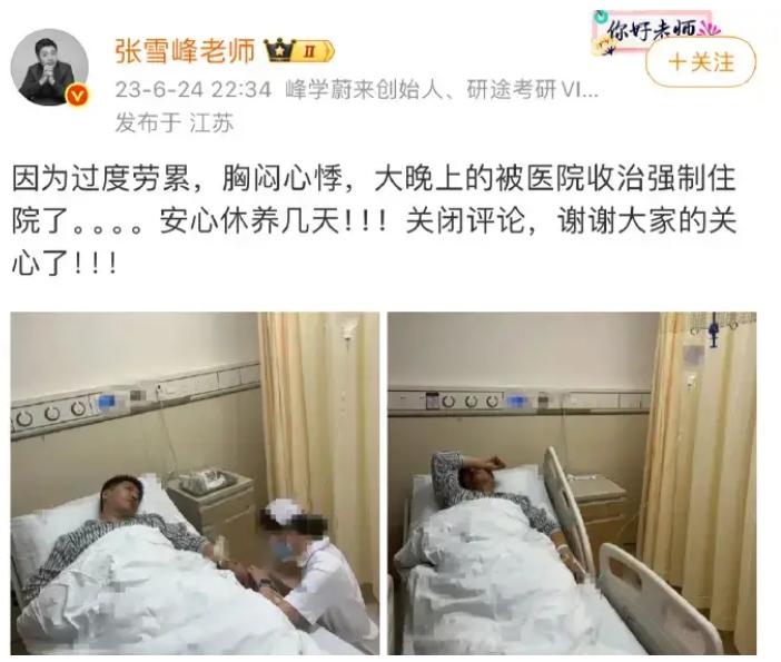 其实早在三年前,张雪峰就因过度劳累被强制住院 。