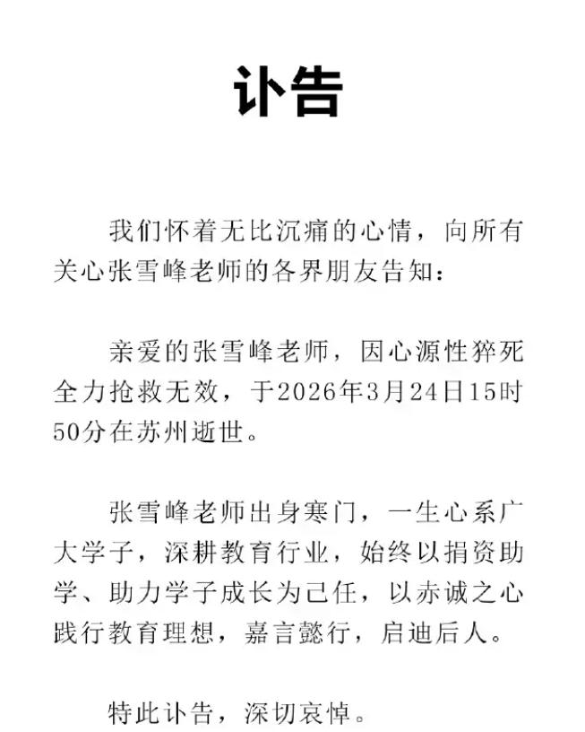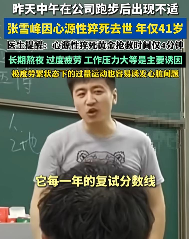 近日,41岁的知名人士张雪峰因跑步后突发心源性猝死而离世!