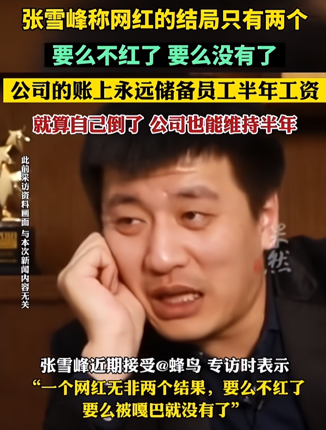 更让人唏嘘的是,他生前的几句话竟一一应验,他说想成为一代人的回忆,如今离世后霸占各大热搜;他说“不要把我救回来,我想好好休息”,如今竟以这种方式“永久休息”;他还说网红结局要么不红要么“嘎巴一下没”,甚至提前预留员工半年工资;2018年他半开玩笑说,最希望的死法就是“嘎巴一下猝死”,没想到真在41岁时应验 .